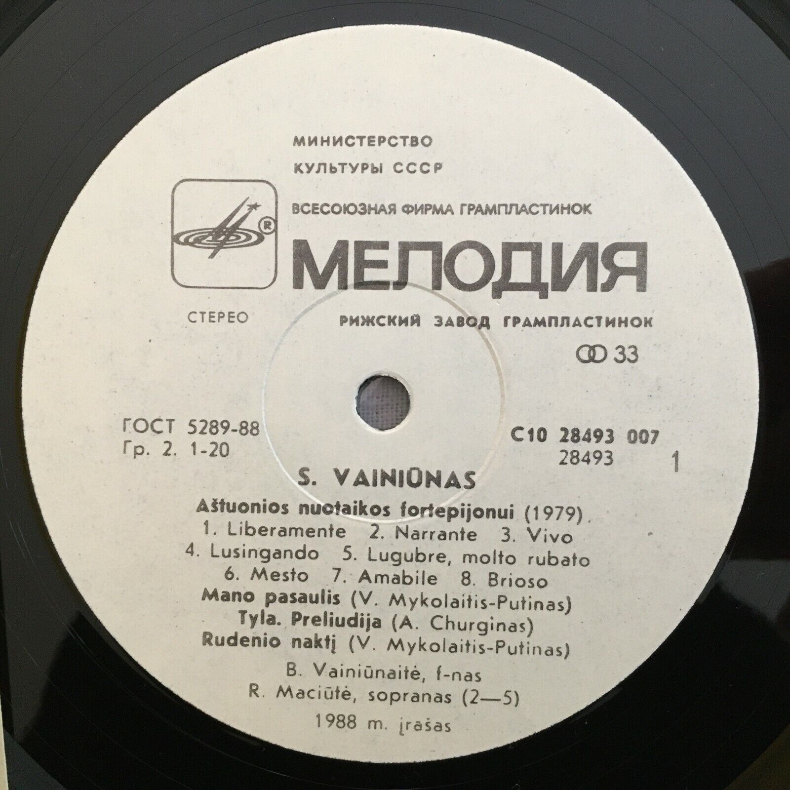 V560 Vainiunas Fortepiano Music Romansai Melodiya C10 28493 007 Stereo