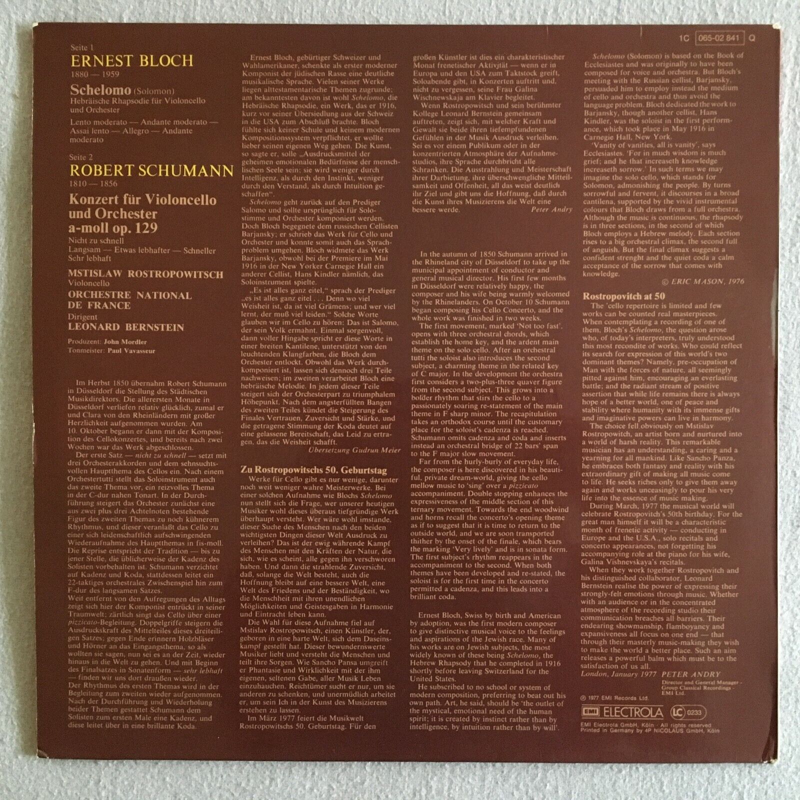 V576 Schumann Cello Concerto Rostropovich Bernstein EMI 1C 065-02 841 Q Quadro