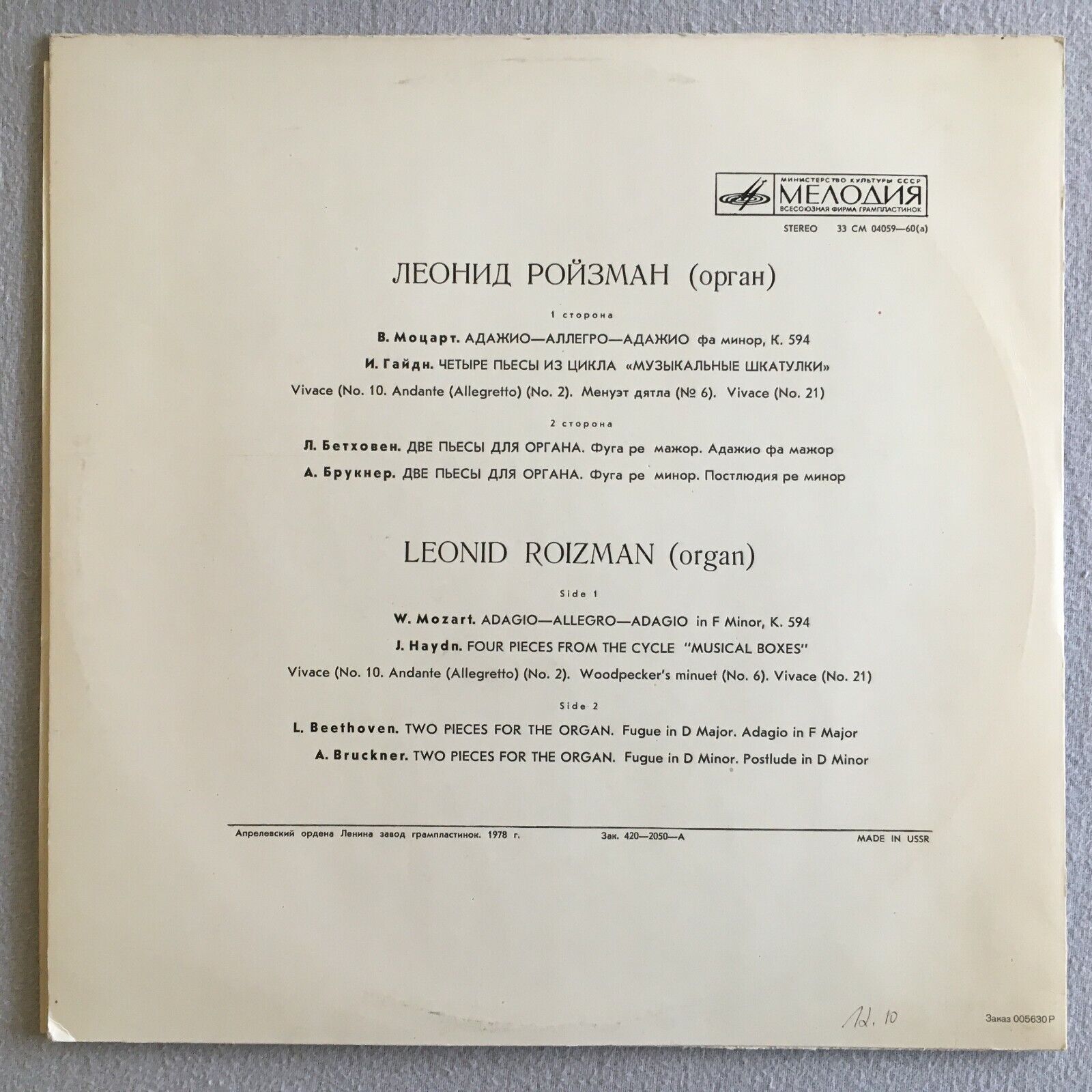 V033 Roizman Organ Pieces Mozart Haydn Melodiya 33 CM 04059-60(a) Stereo