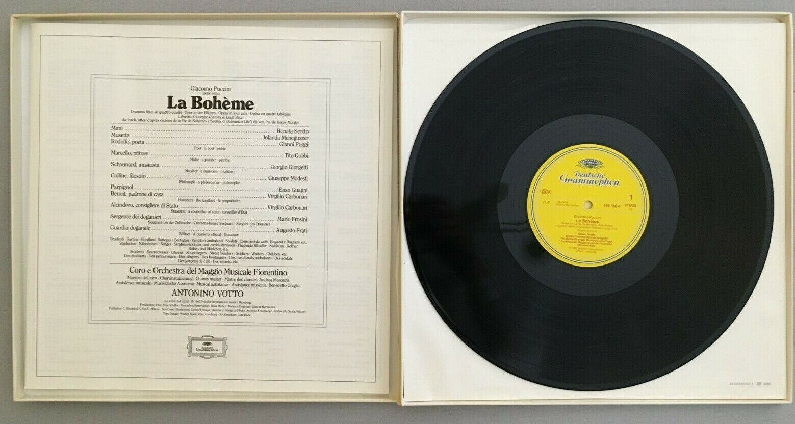 B476 Puccini La Boheme Scotto Gobbi Poggi Votto 2LP DGG 419 117-1 Stereo