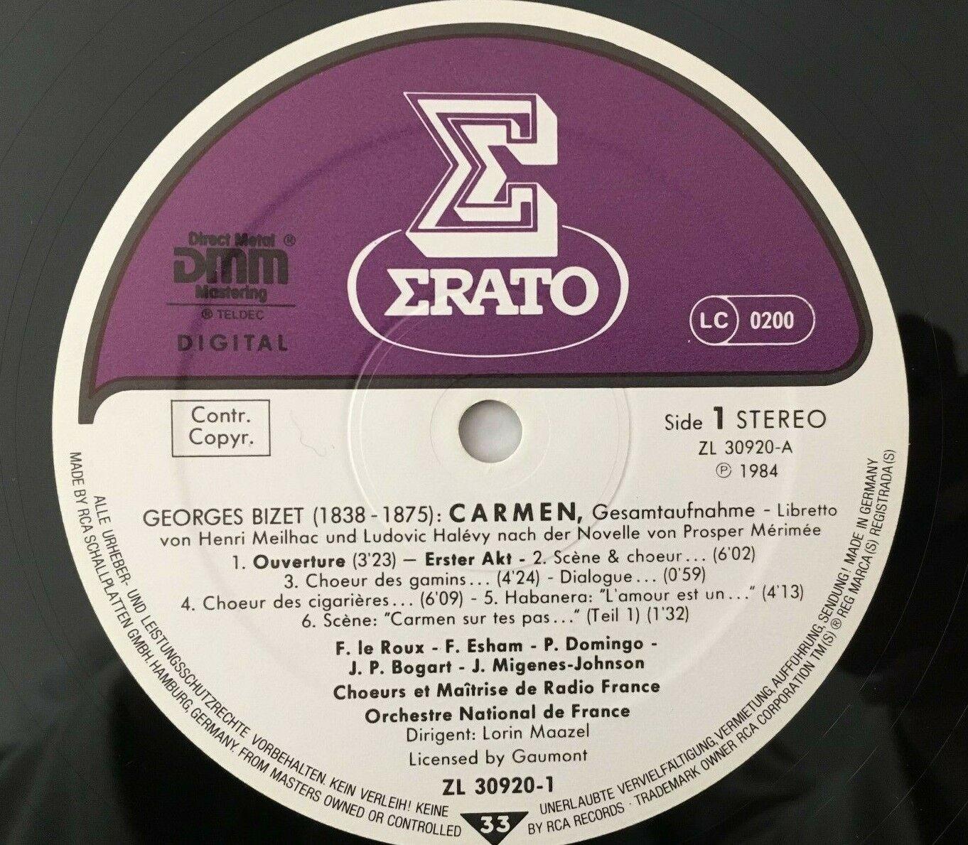 G108 Bizet Carmen Migenes Johnson Domingo Maazel 3LP Erato 40514-2 Digital Stere
