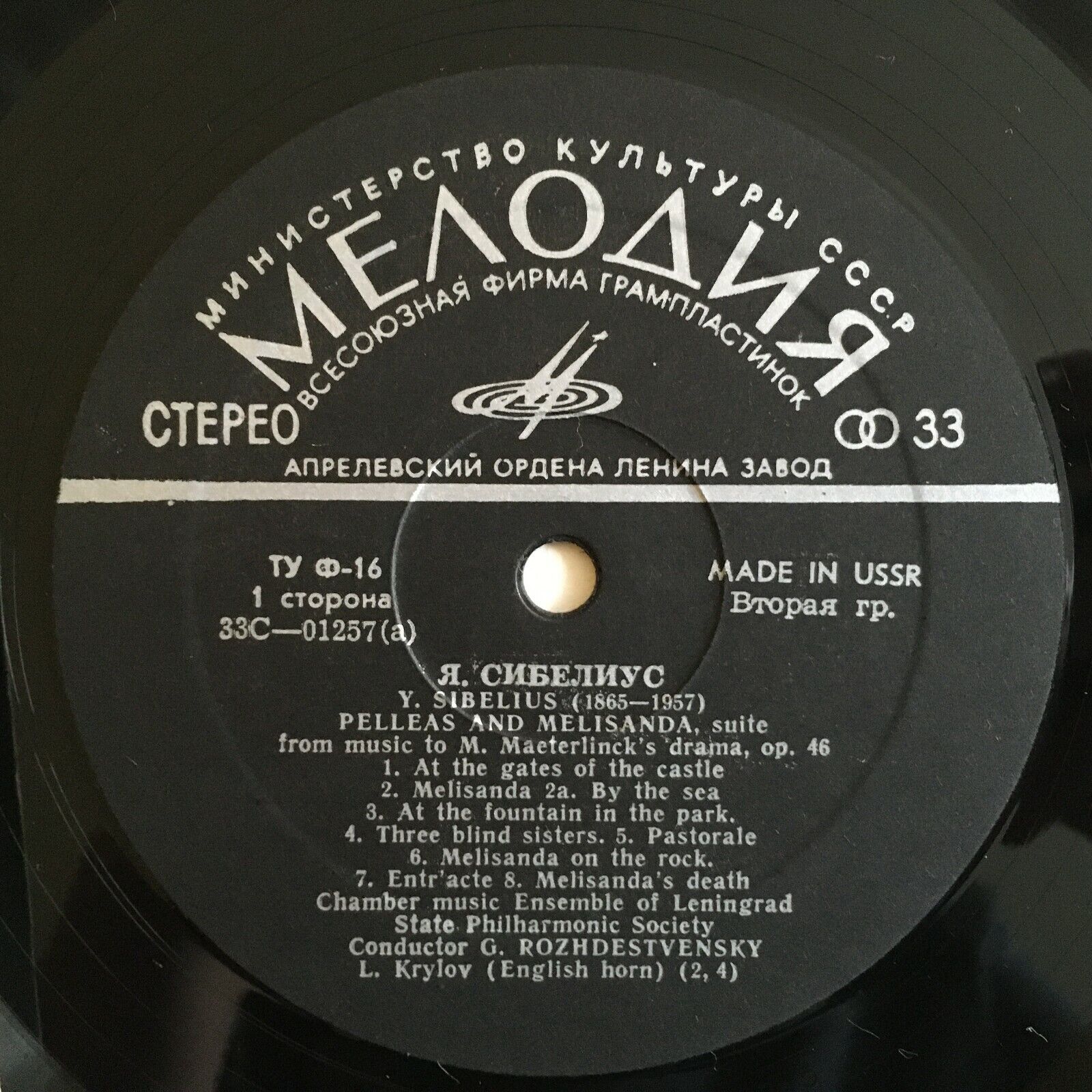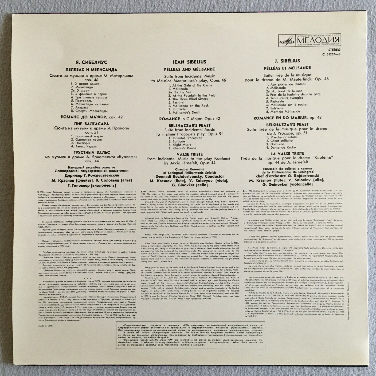 V585 Sibelius Suites Pelleas Melisande Rozhdestvensky Melodiya C 01257-8 Stereo