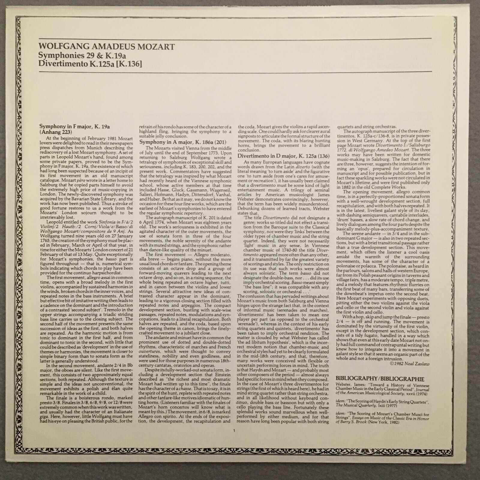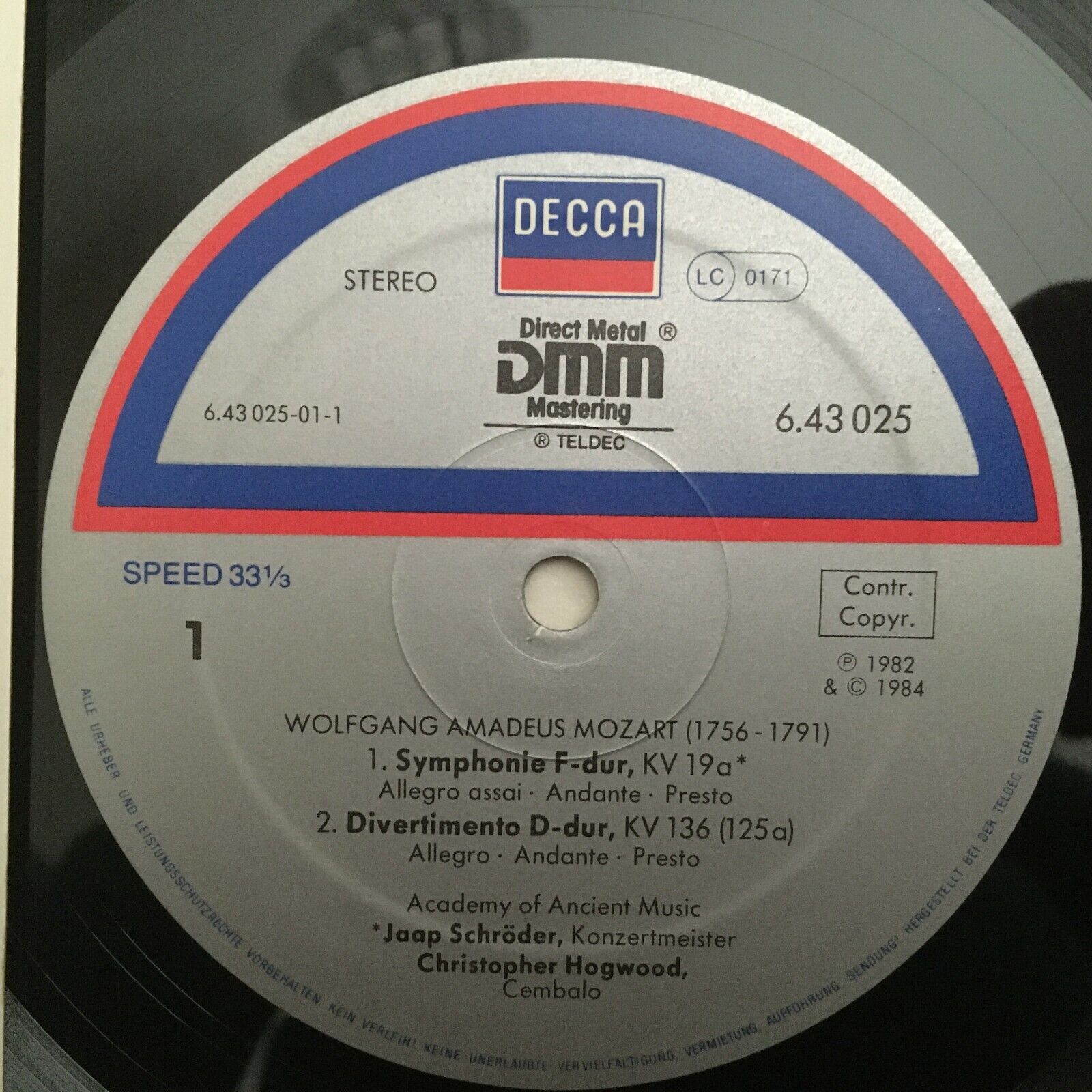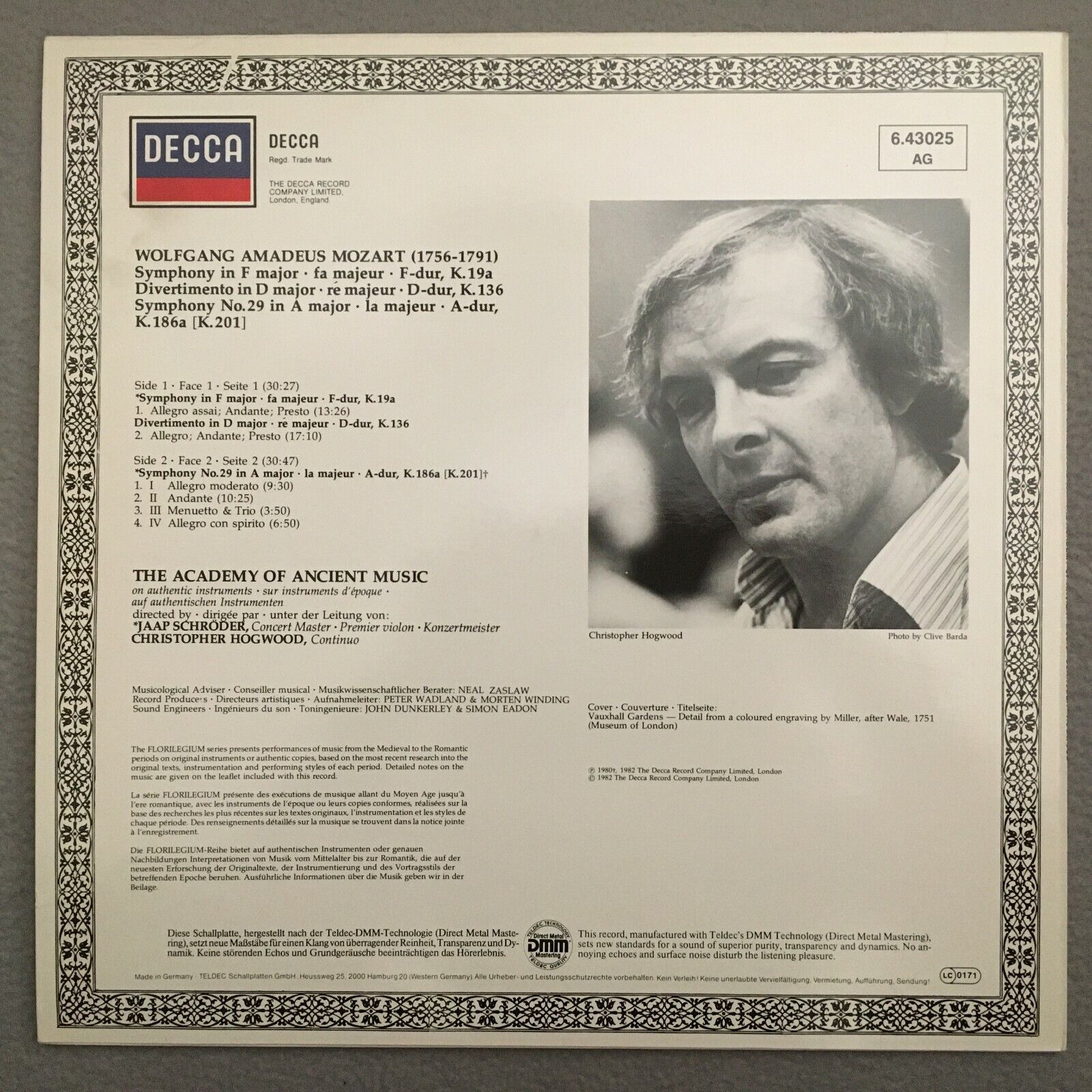 V132 Mozart Symphonies Hogwood Schröder DECCA 6.43025 AG Digital Stereo