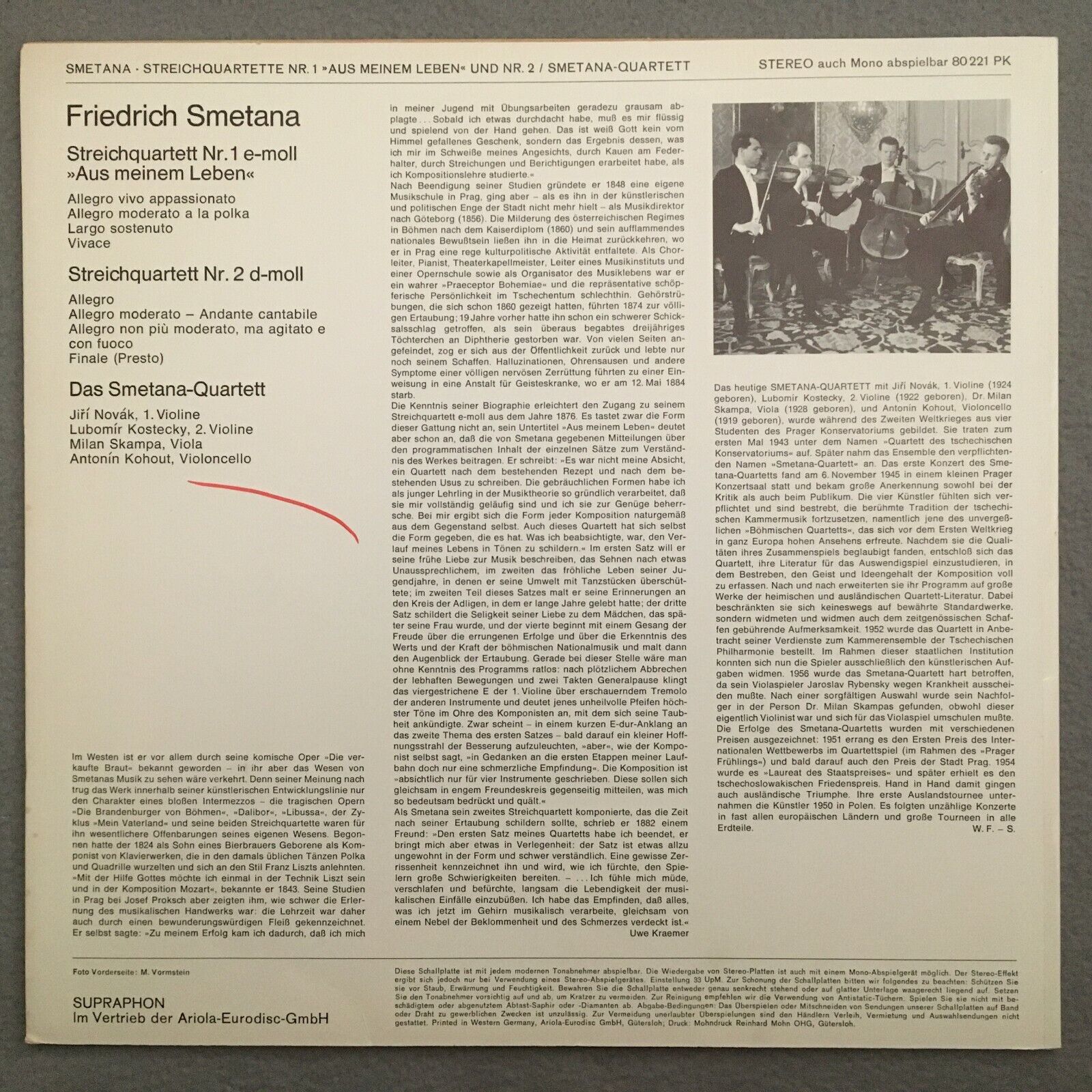 V150 Smetana String Quartets No.1 & 2 Smetana Quartet Supraphon 80 221 PK Stereo