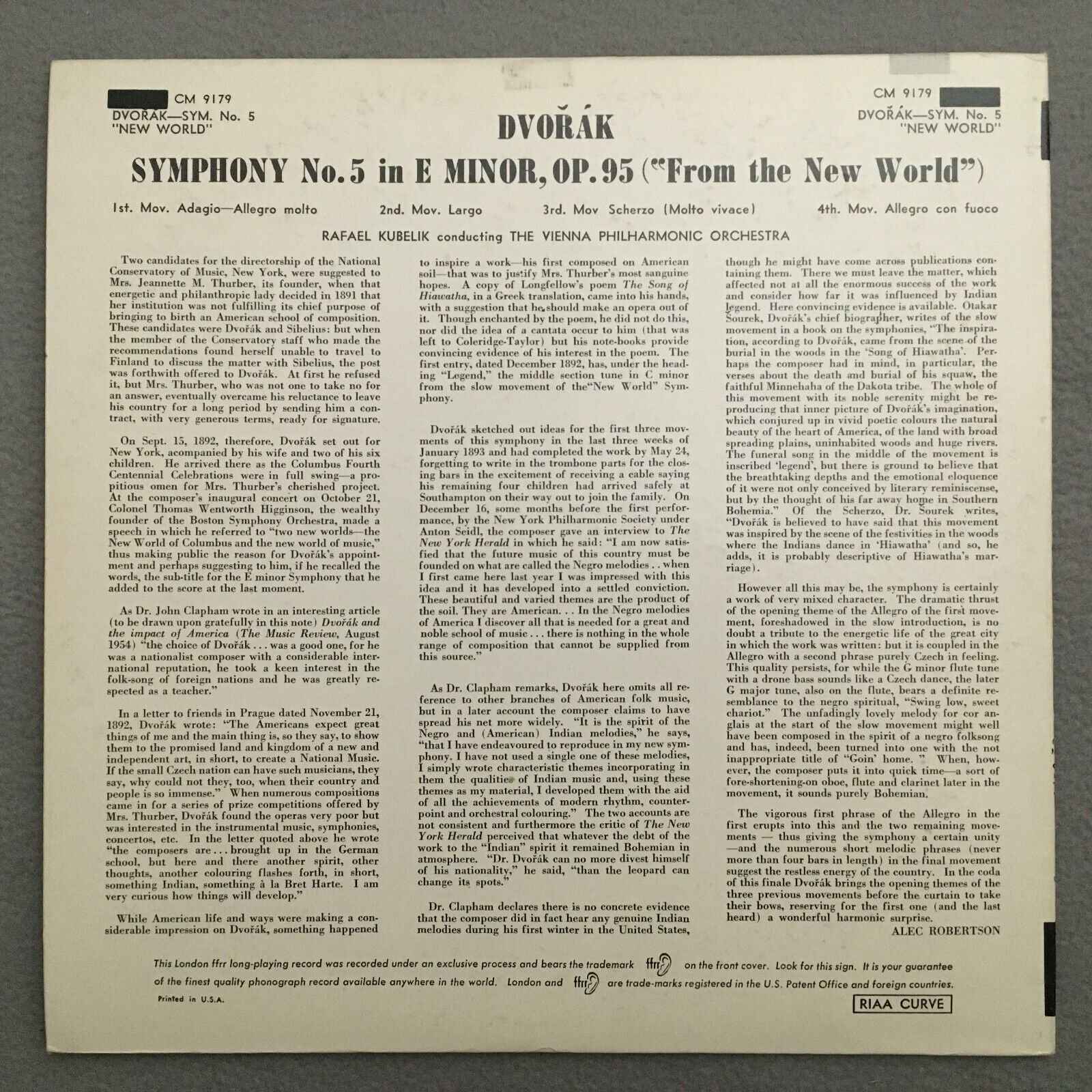 V169 Dvorak Symphony No.5 Kubelik VPO London Records CM 9179