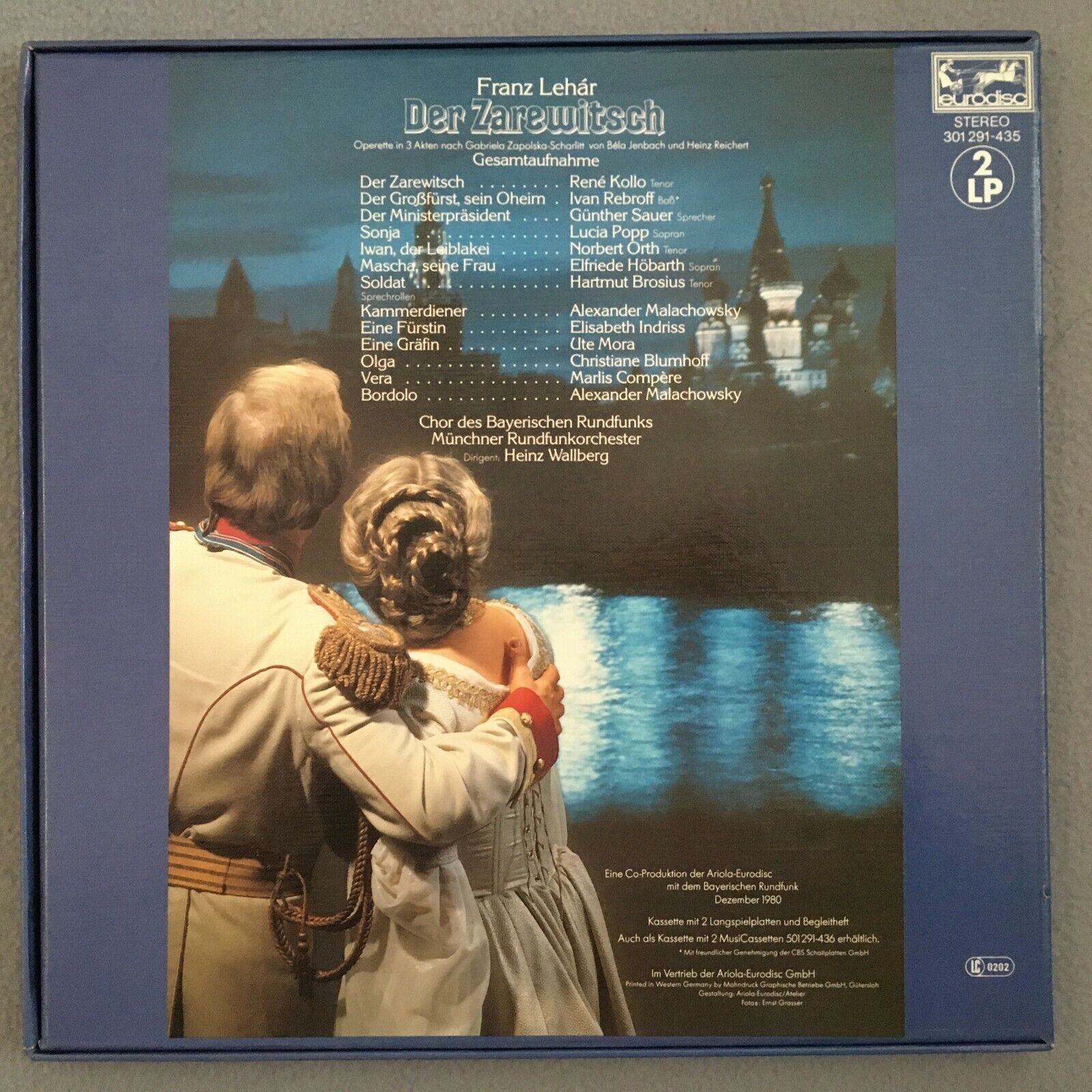 B544 Lehar Der Zarewitsch Popp Kollo Wallberg 2LP Eurodisc 301 291-435 Stereo