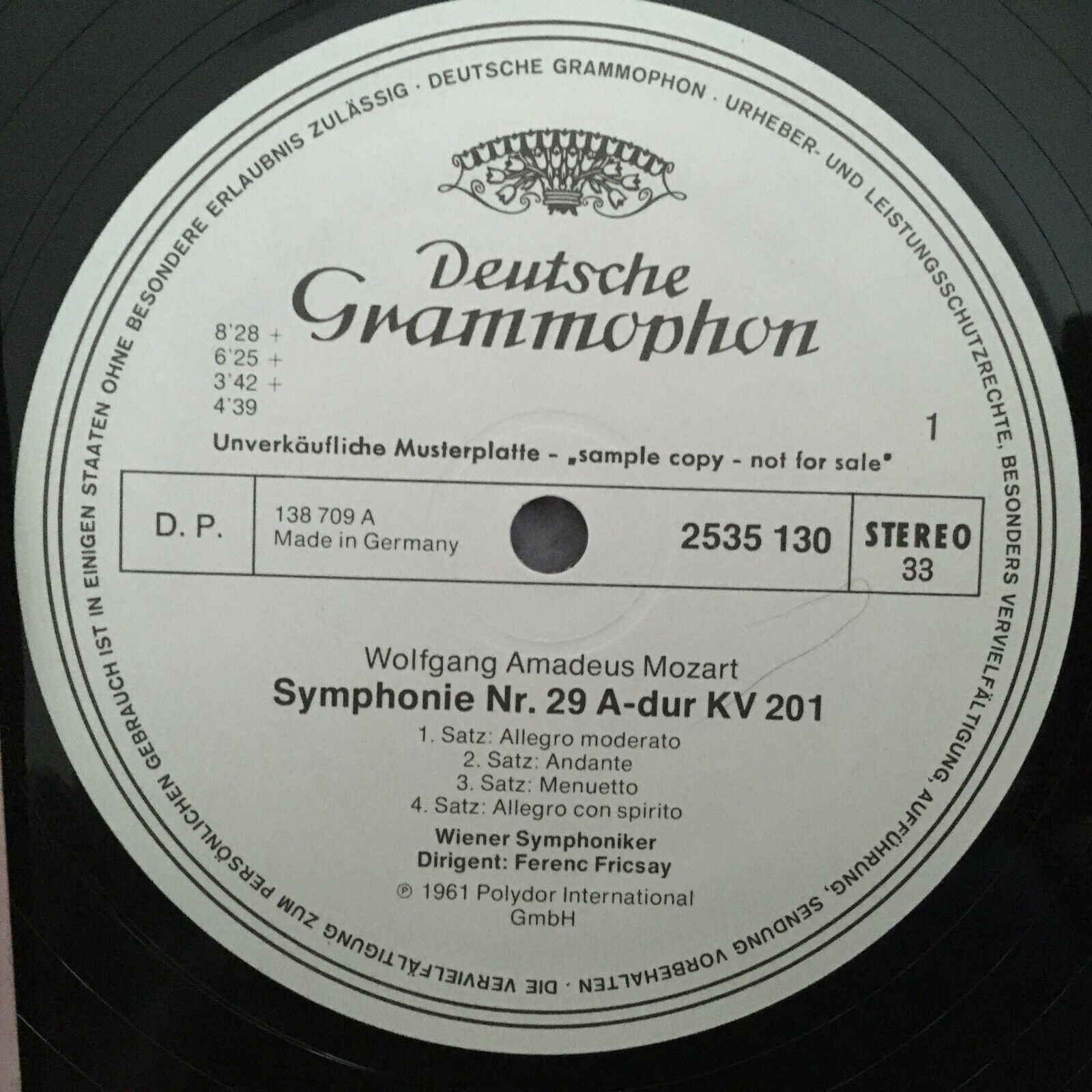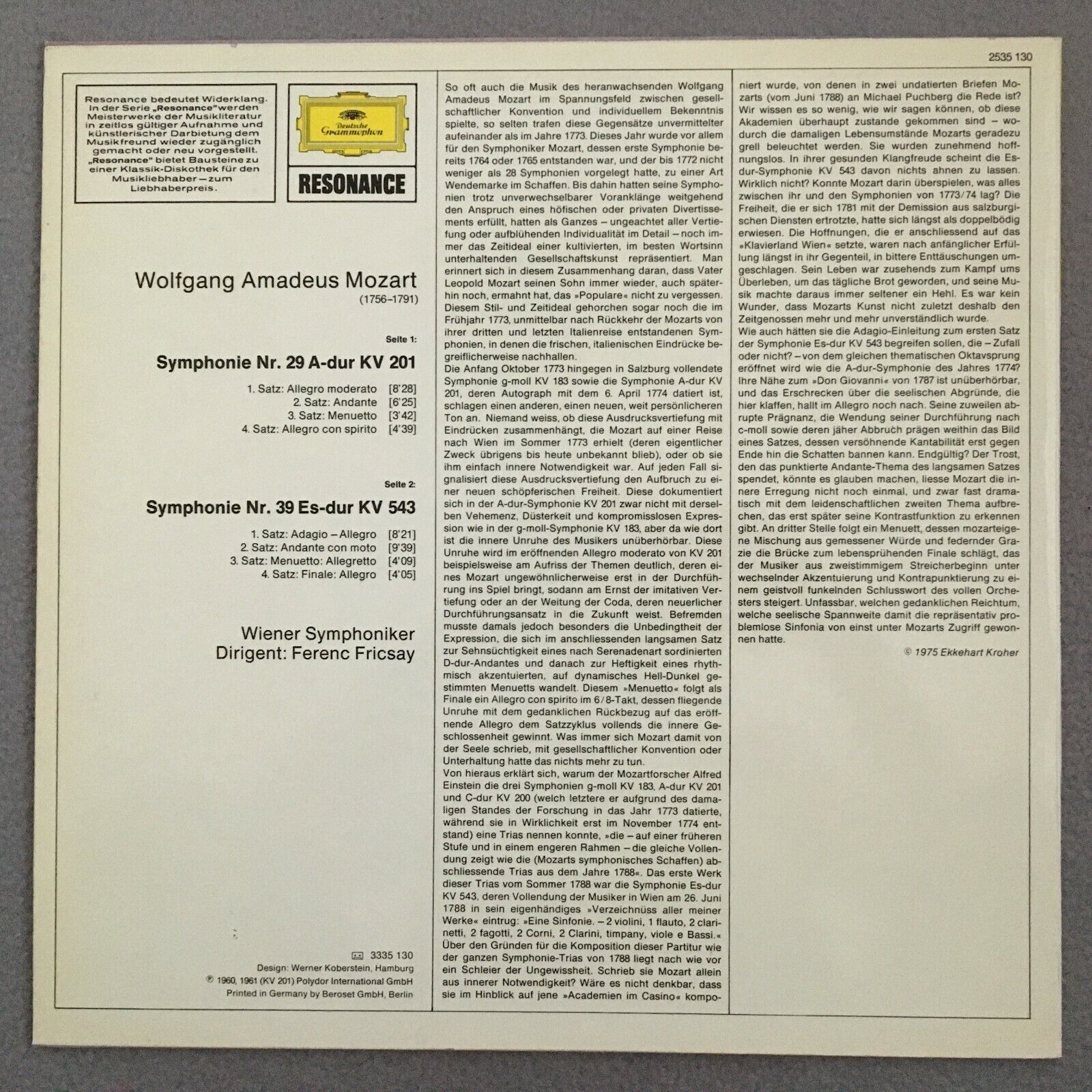 V250 Mozart Symphonies No.29 & No.39 Fricsay VSO DGG 2535 130 Stereo PROMO