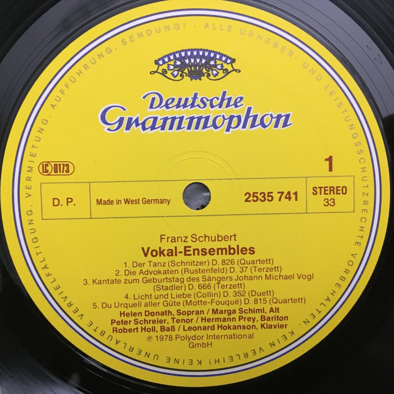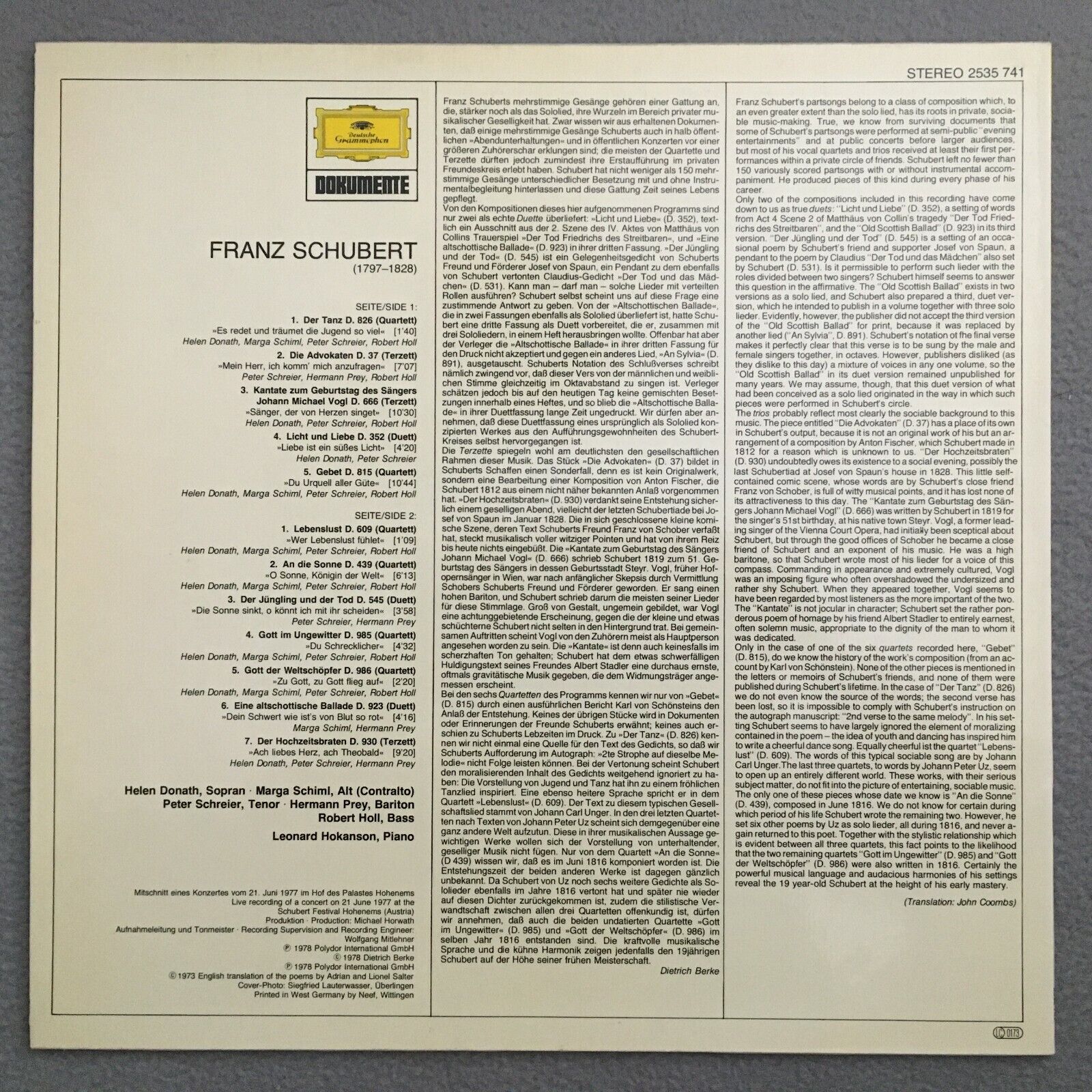 V269 Schubert Vocal Ensembles Donath Schreier Prey Hokanson DGG 2535 741 Stereo