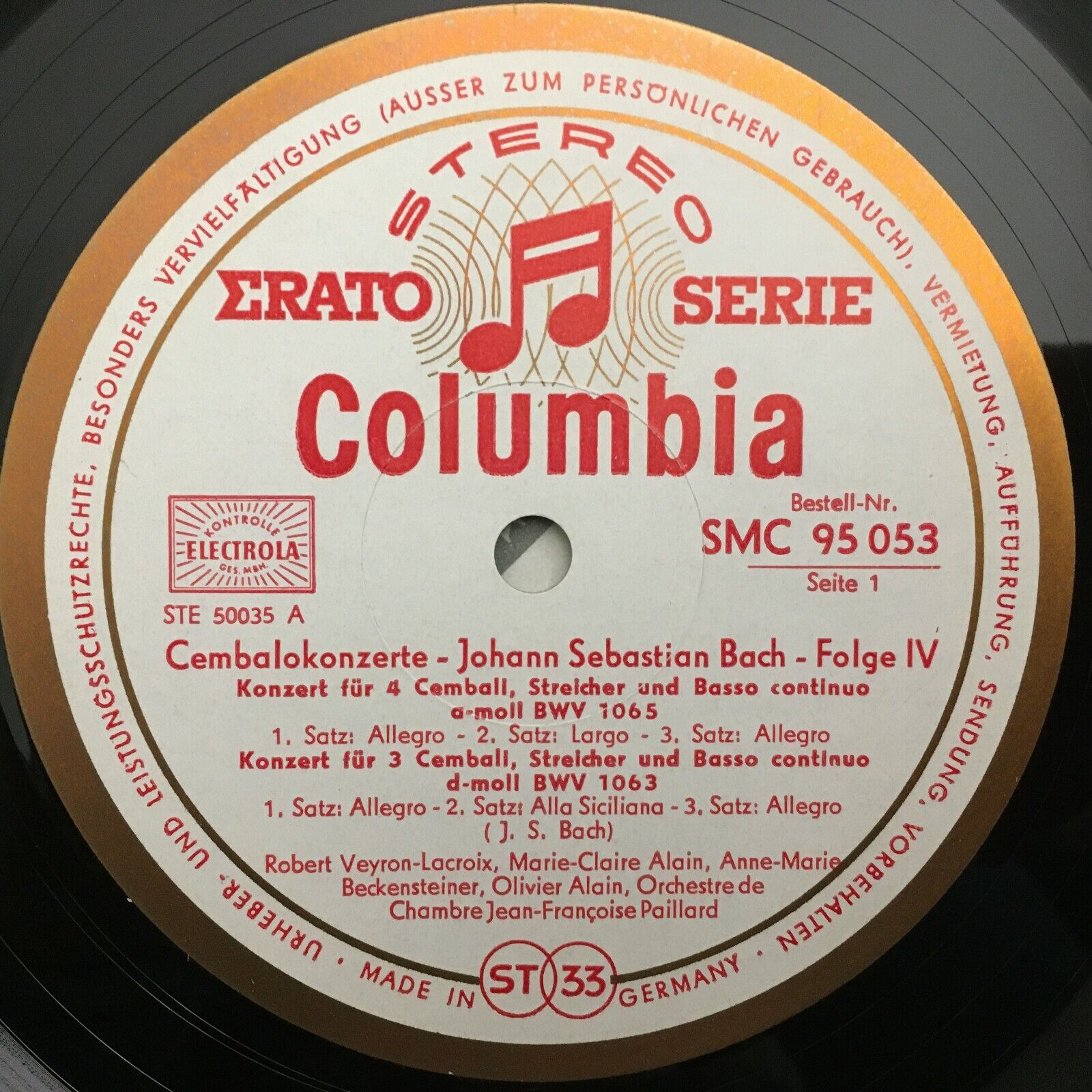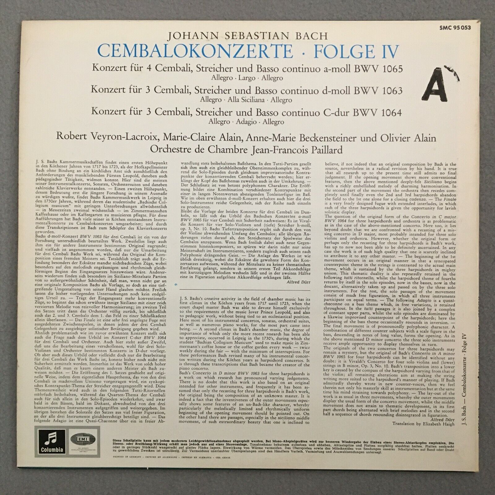 V319 Bach Harpsichord Concertos Alain Paillard Columbia w/g SMC 95 053 Stereo