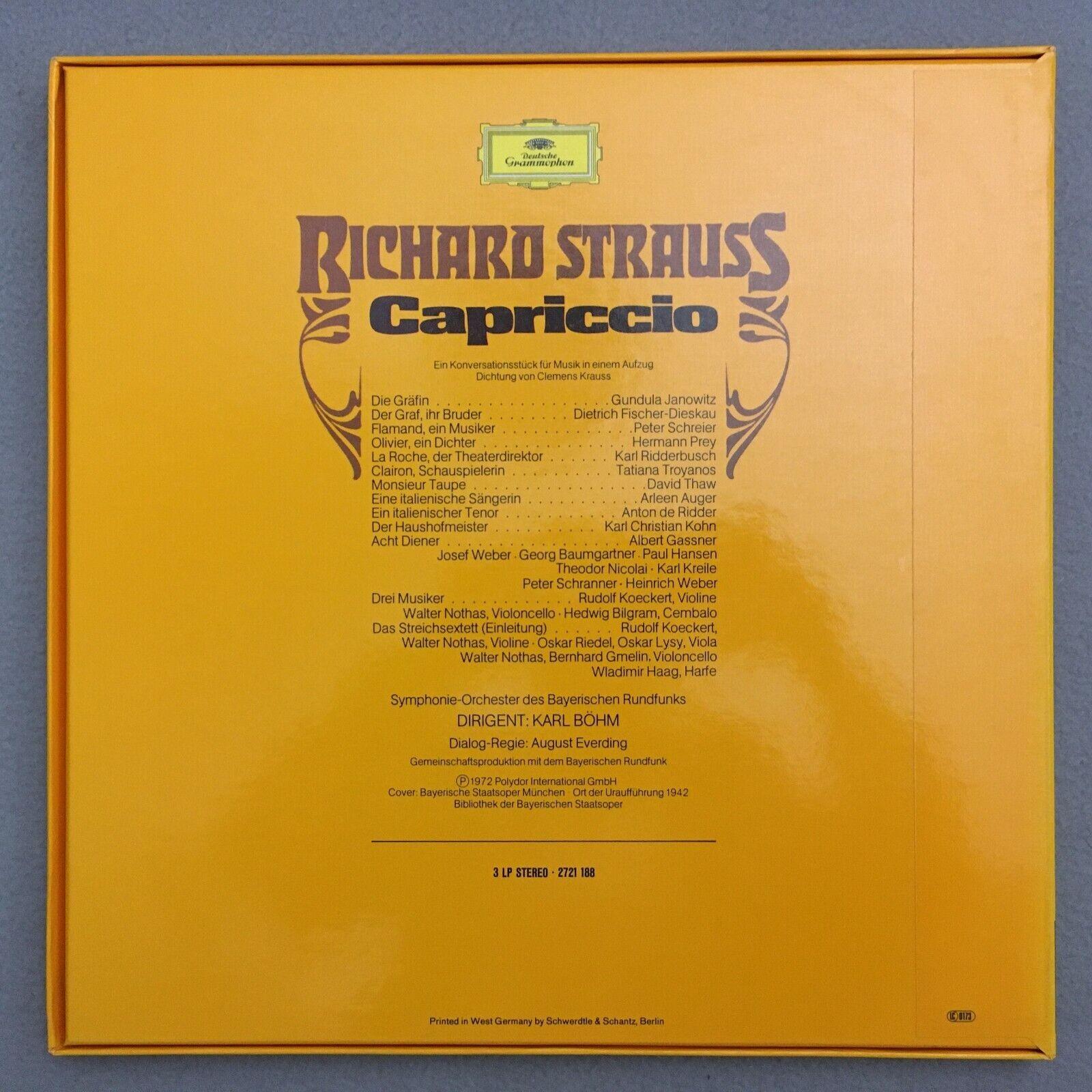 G188 R. Strauss Capriccio Fischer-Dieskau Janowitz Bohm 3LP DGG 2721 188 Stereo