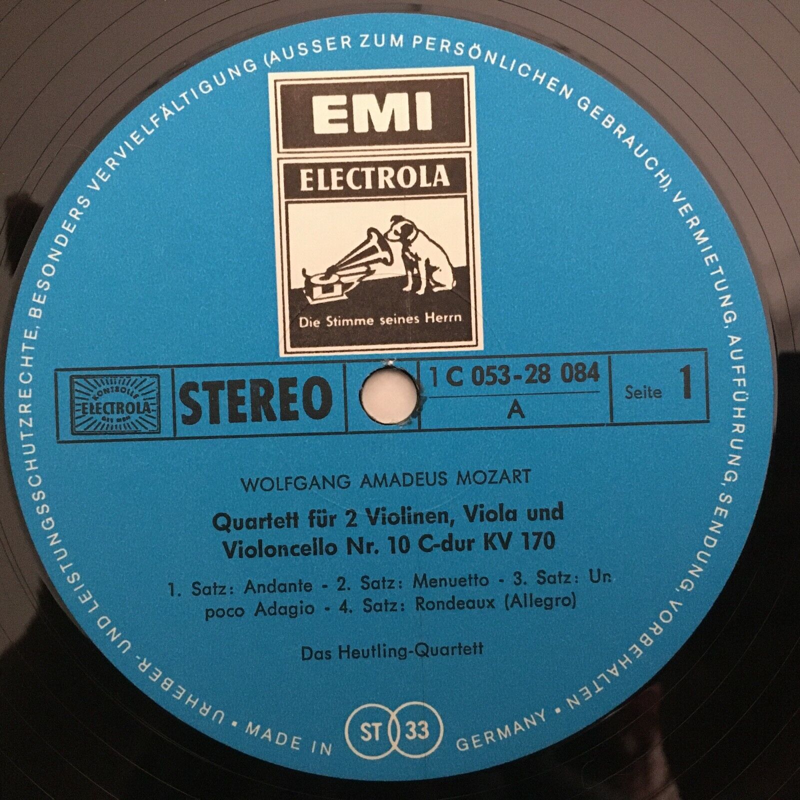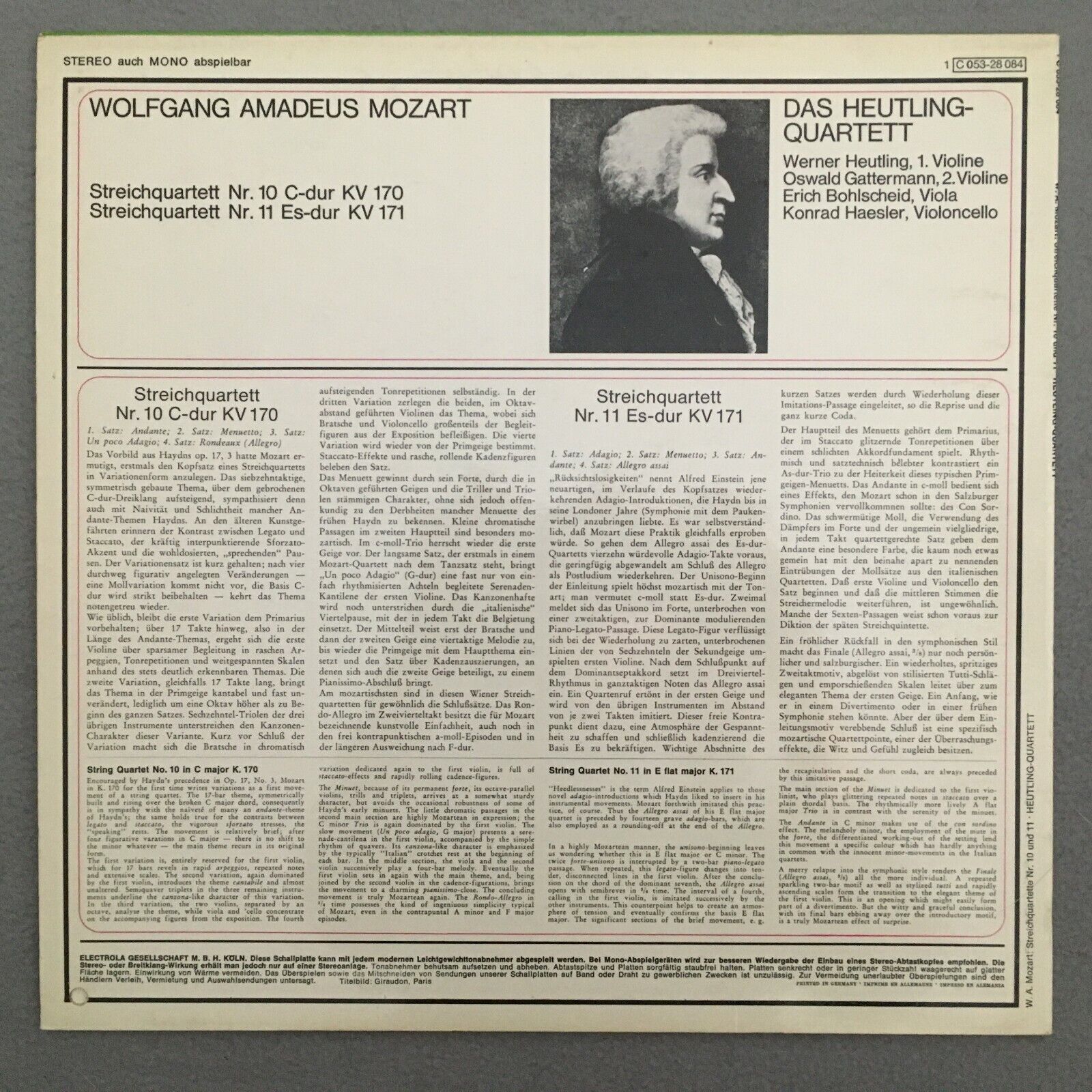 S966 Mozart String Quartets No.10 &11 Heutling Quartet EMI 1 C 053-28 084 Stereo