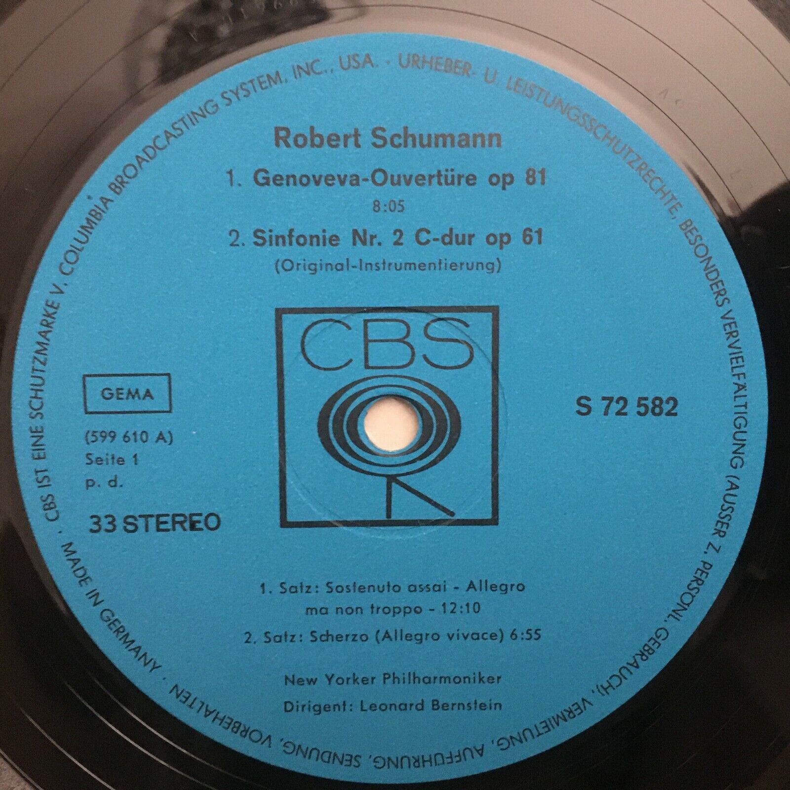 S990 Schumann Symphony No.2 Overture Bernstein CBS S 72 582 Stereo