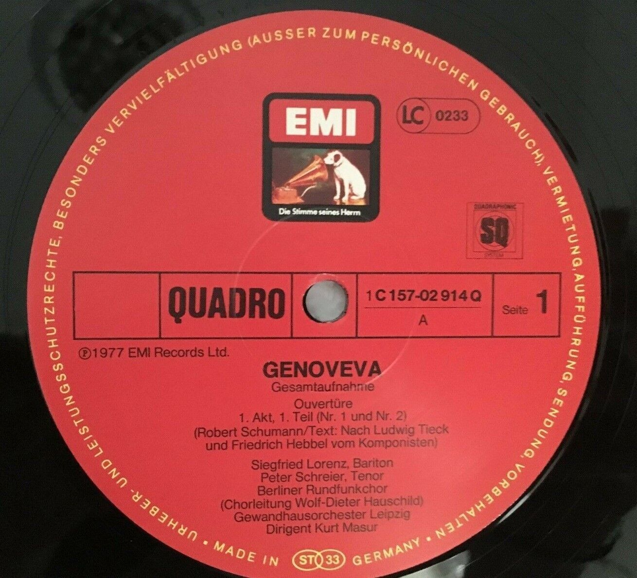 G259 Schumann Genoveva Moser Schreier Masur 3LP EMI 1C 157-02 914/16 Q Quadro