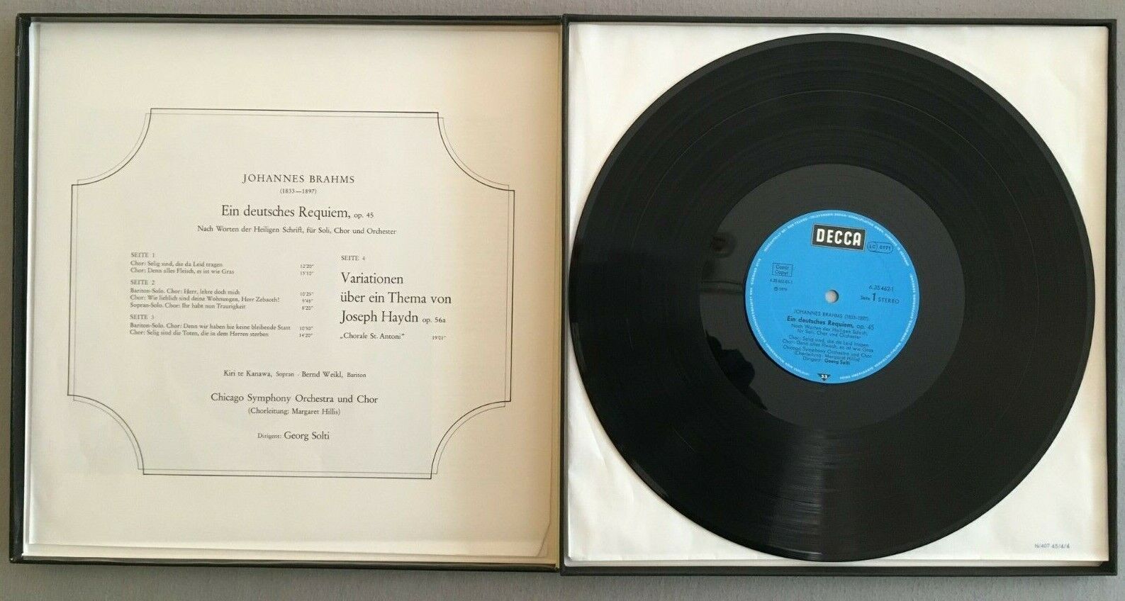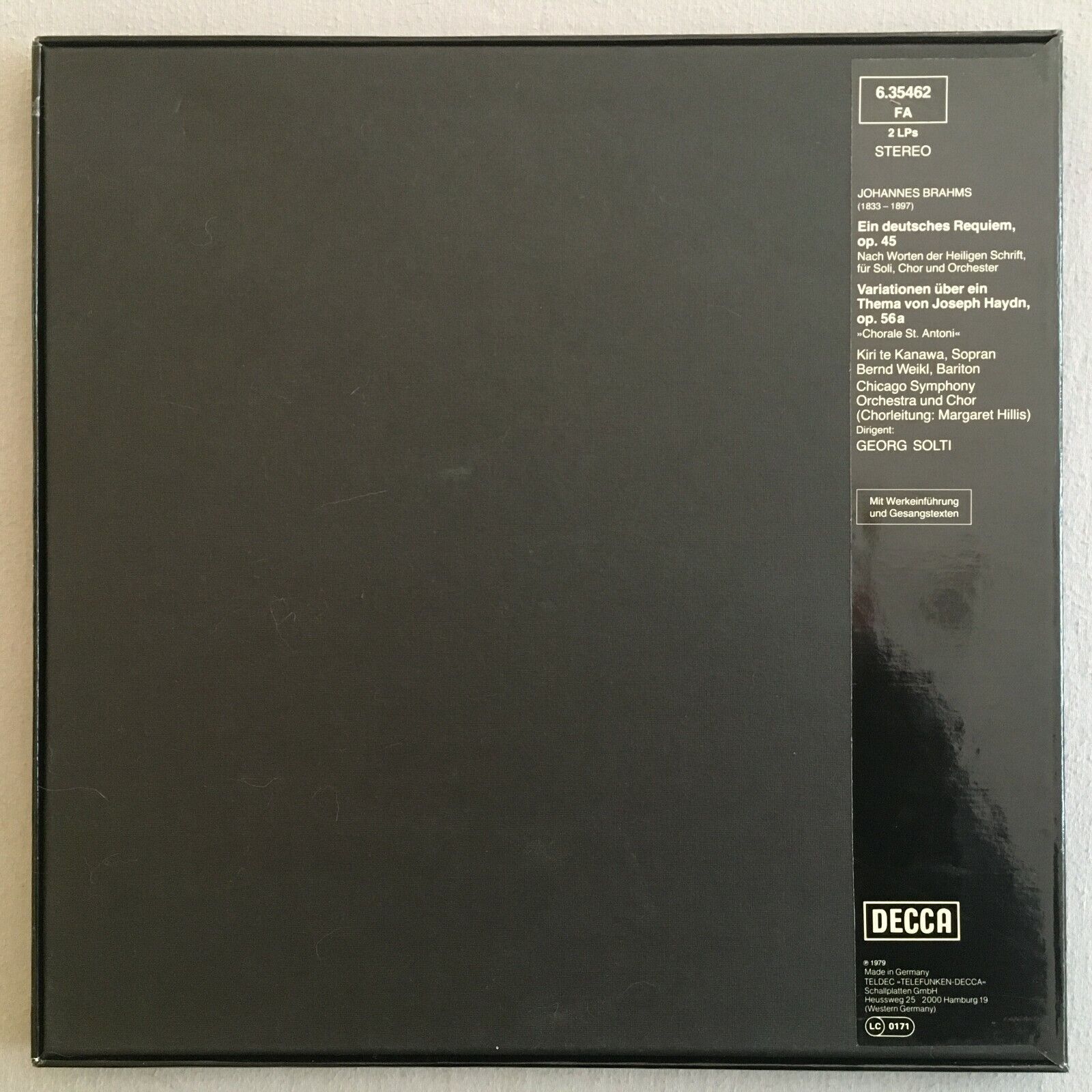C114 Brahms German Requiem Te Kanawa Weikl Solti 2LP DECCA 6.35462 FA Stereo