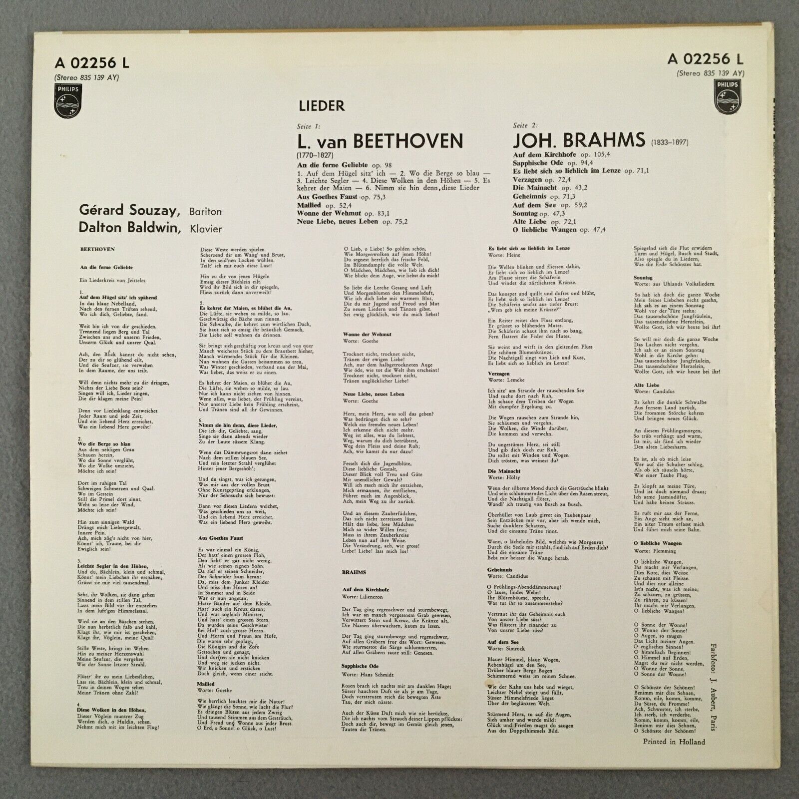 R741 Beethoven Brahms Songs Souzay Baldwin Piano Philips A 02256 L