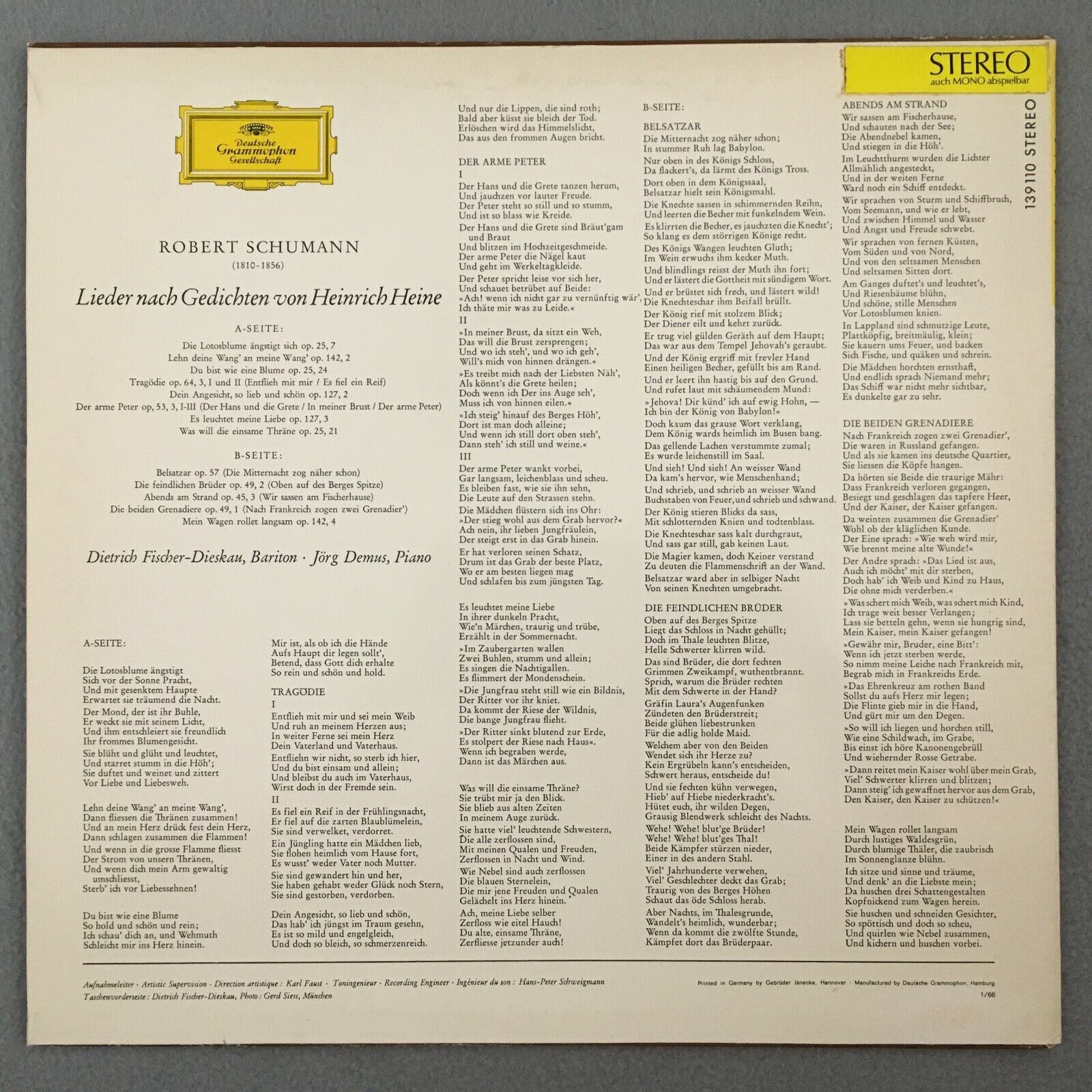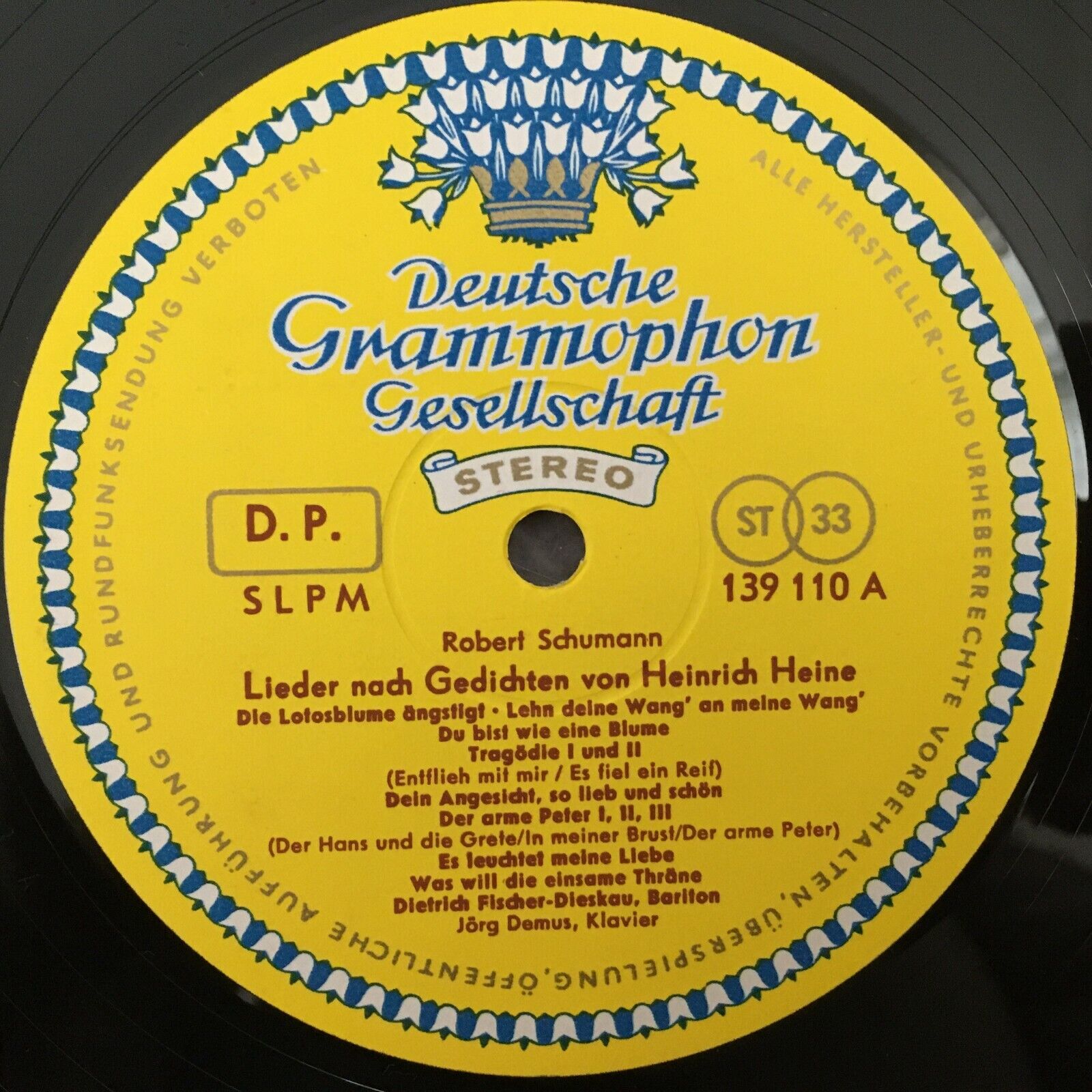 R744 Schumann Heine Songs Fischer-Dieskau Demus DGG 139 110 SLPM Stereo Tulip