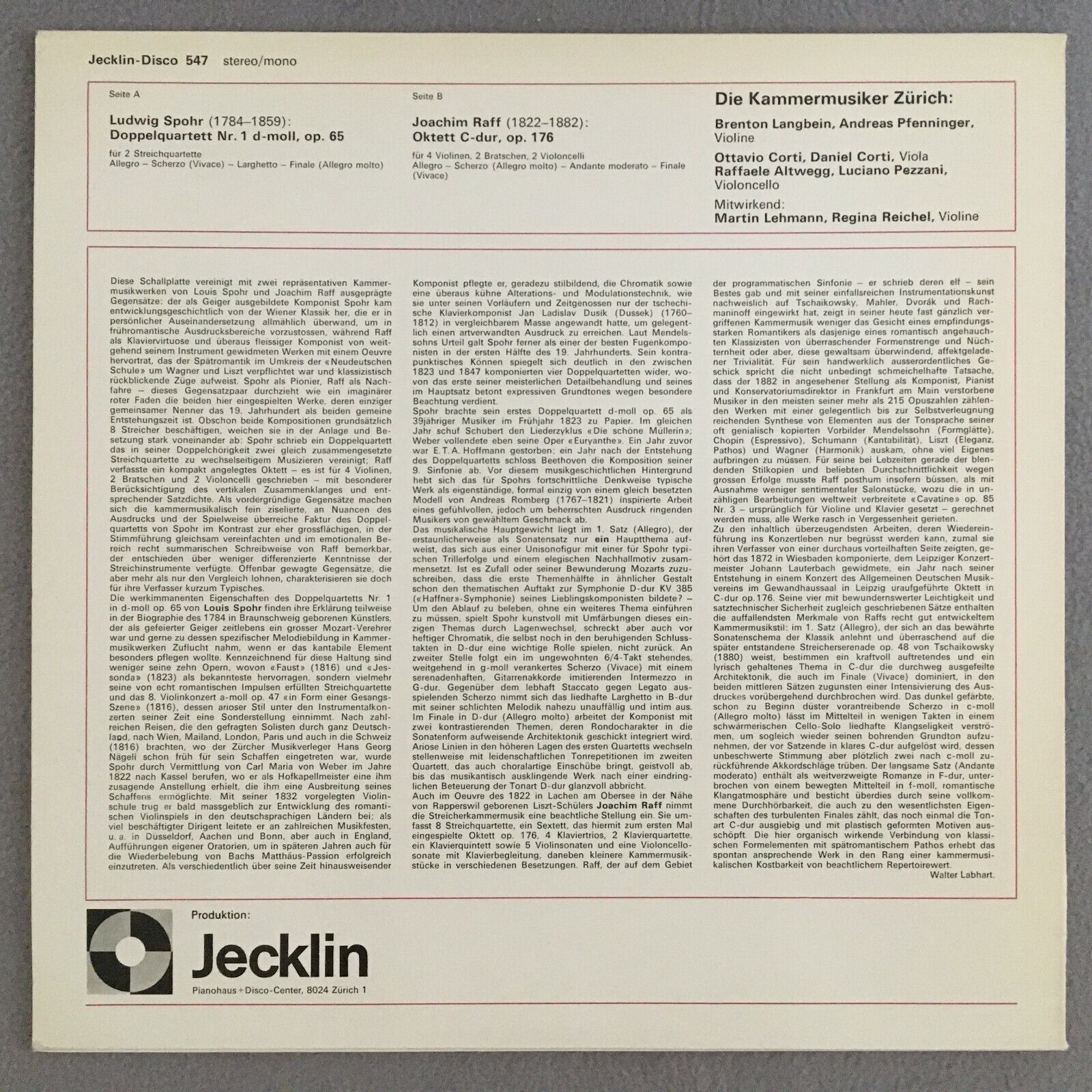 R861 Spohr Quartet Raff Octet Langbein Corti Lehmann Jecklin Disco 547 Stereo