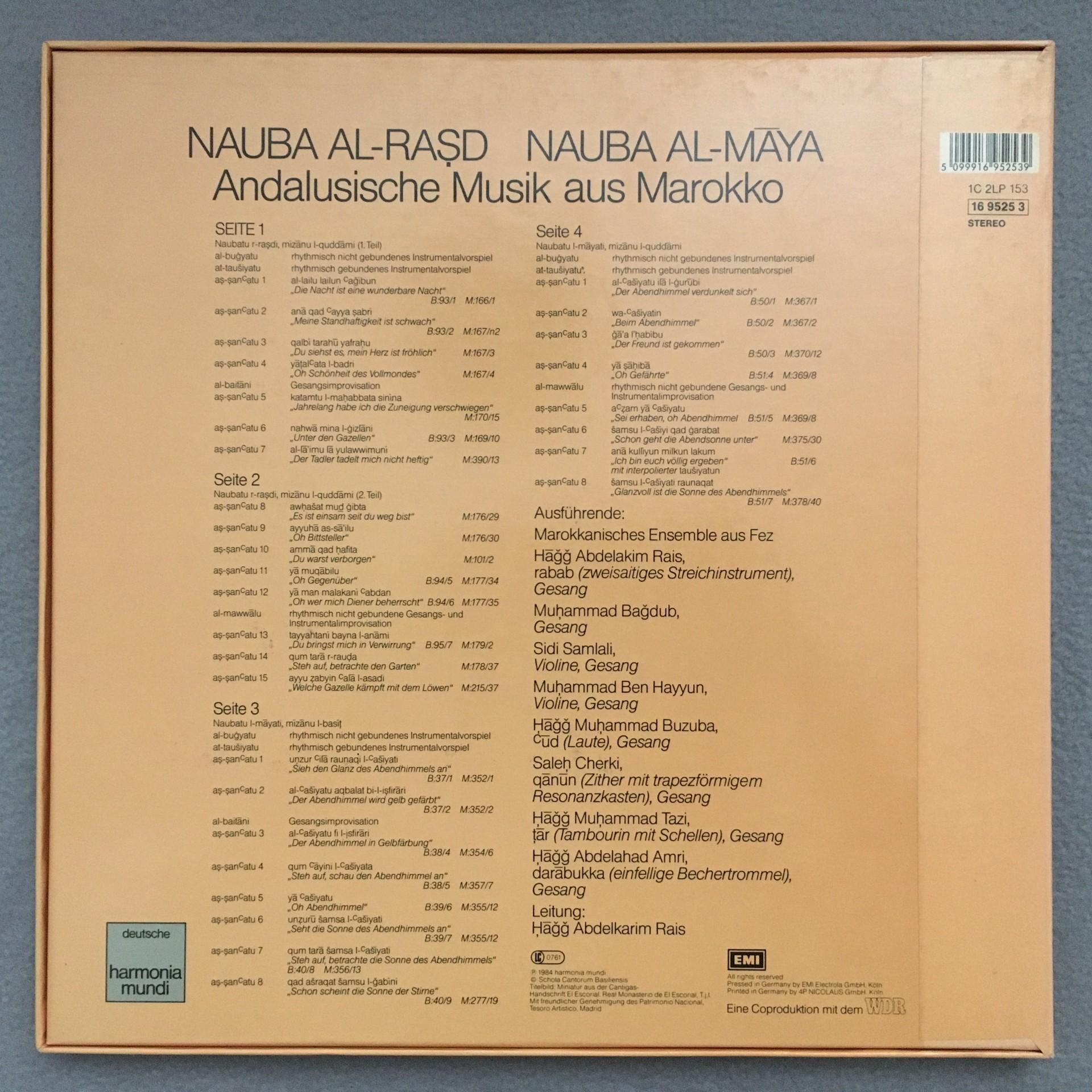 D019 Andalusian Music of Maroc SCB Hagg Rais 2LP HM 1C 153 16 9525 3 Stereo
