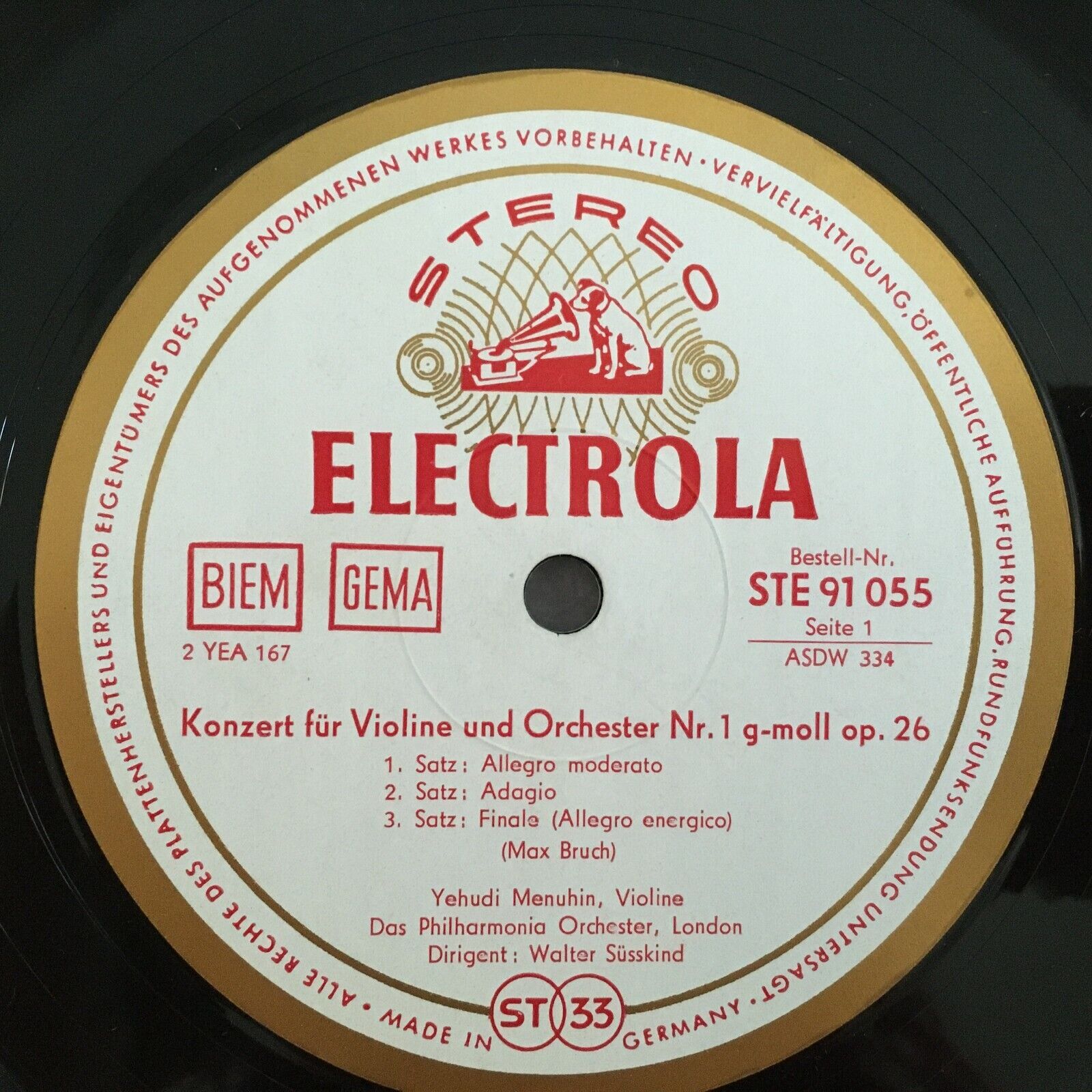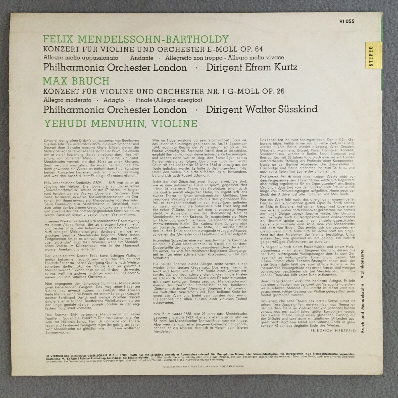 R876 Bruch Mendelssohn Violin Concertos Menuhin Kurtz Electrola w/g STE 91 055