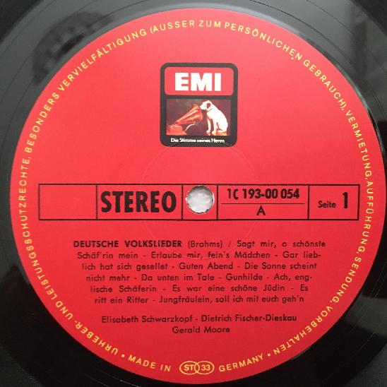 D030 Brahms German Folk Songs Fischer-Dieskau Moore 2LP EMI 1C 193-000 54/55 St
