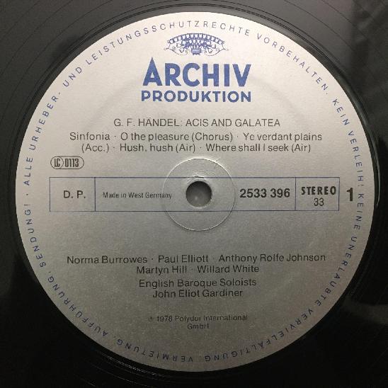 D033 Handel Acis & Galatea Burrowes Gardiner 2LP DGG Archiv 2708 038 Stereo