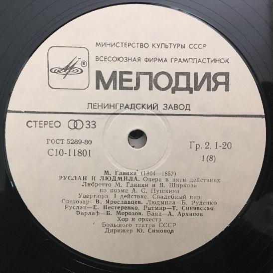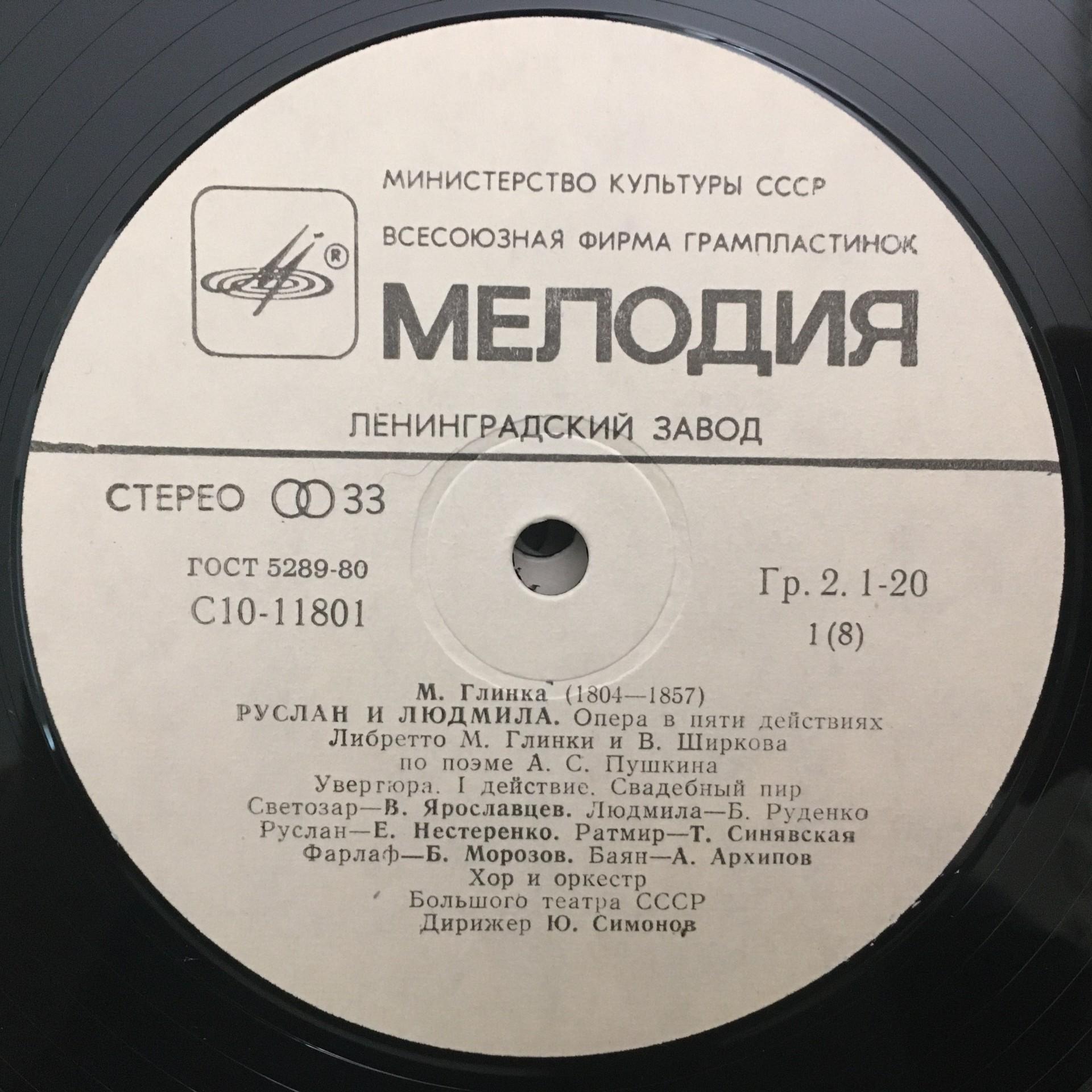 D043 Glinka Ruslan and Ludmila Simonov 4LP Melodiya C10-11801-8 Stereo