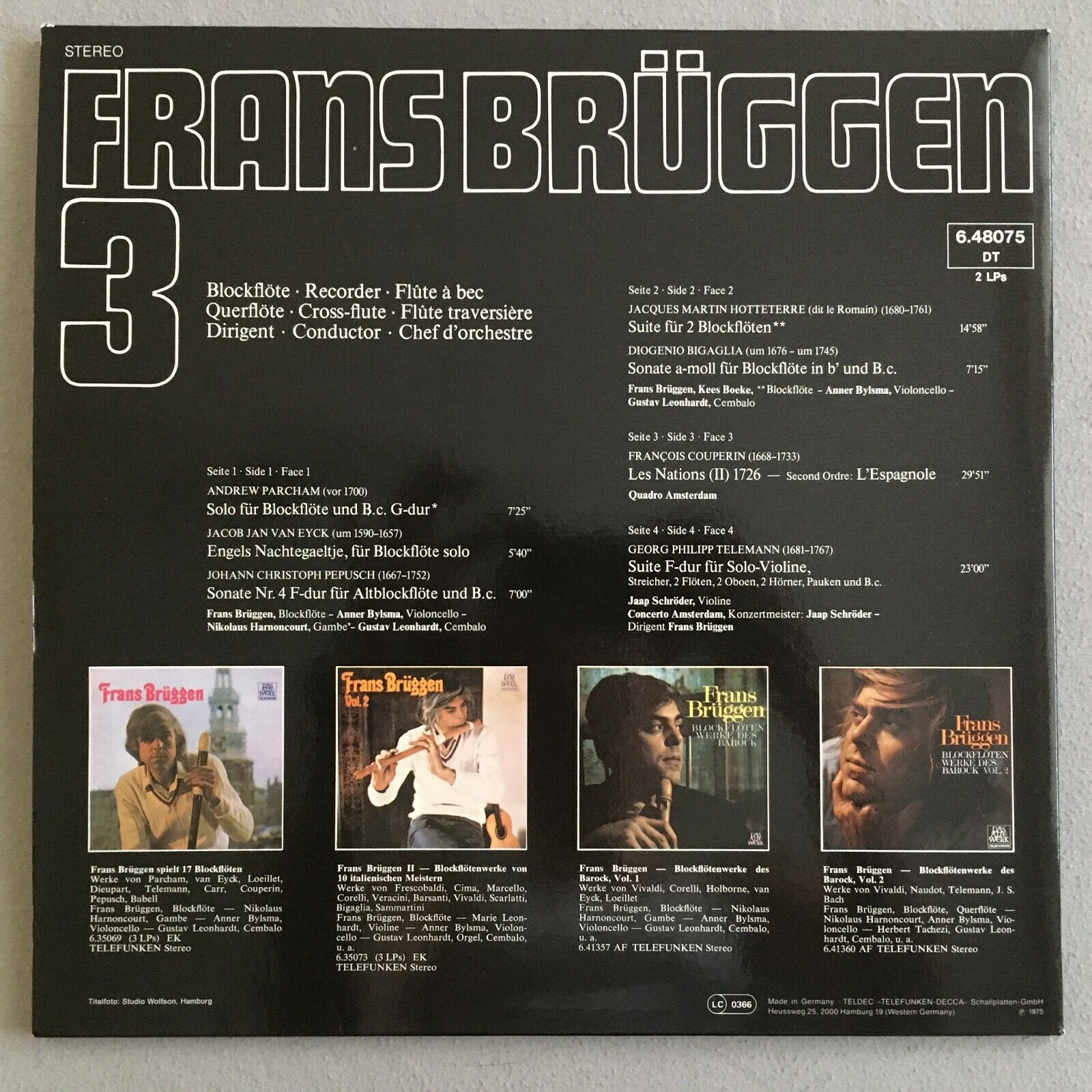 R892 Frans Brüggen 3 Bylsma Leonhardt Schröder 2LP Telefunken 6.48075 DT Stereo
