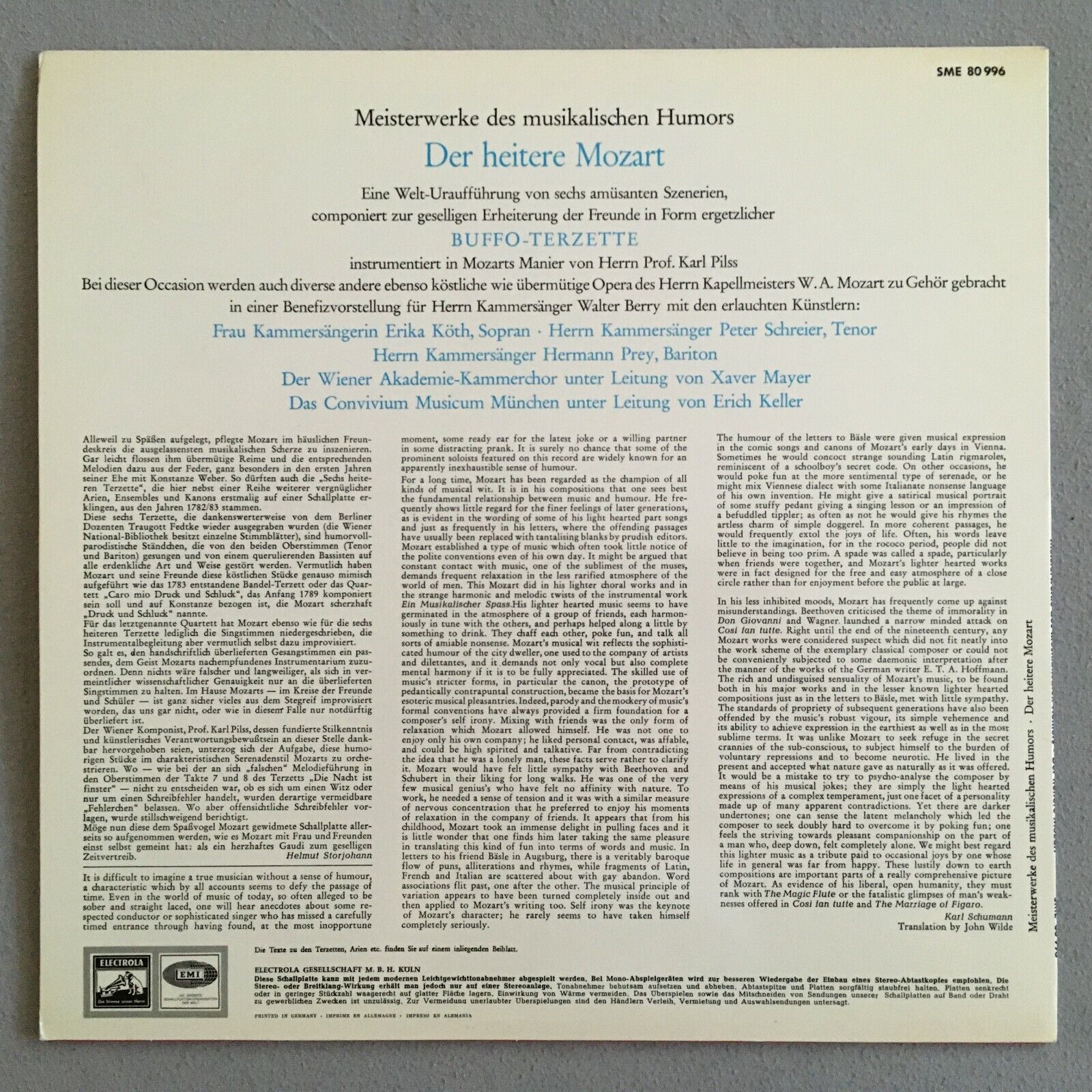 R893 The funny Mozart Schreier Prey Keller Columbia SME 80 996 w/g Stereo ED1