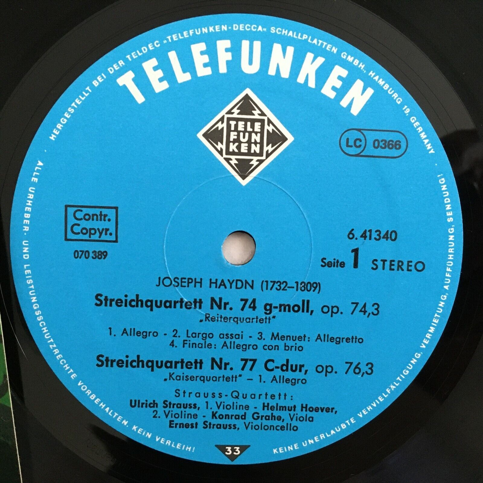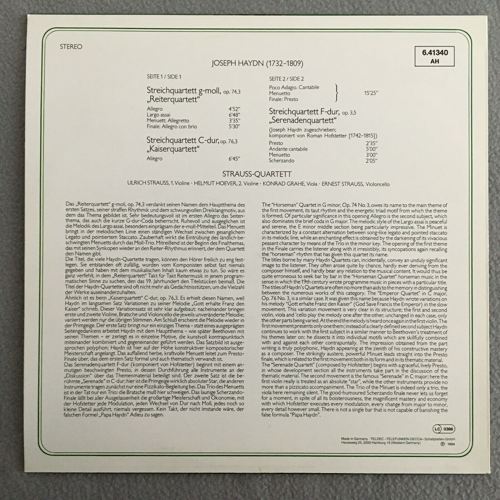 R898 Haydn Quartets Strauss Quartet Hoever Grahe Telefunken 6.41340 AH Stereo