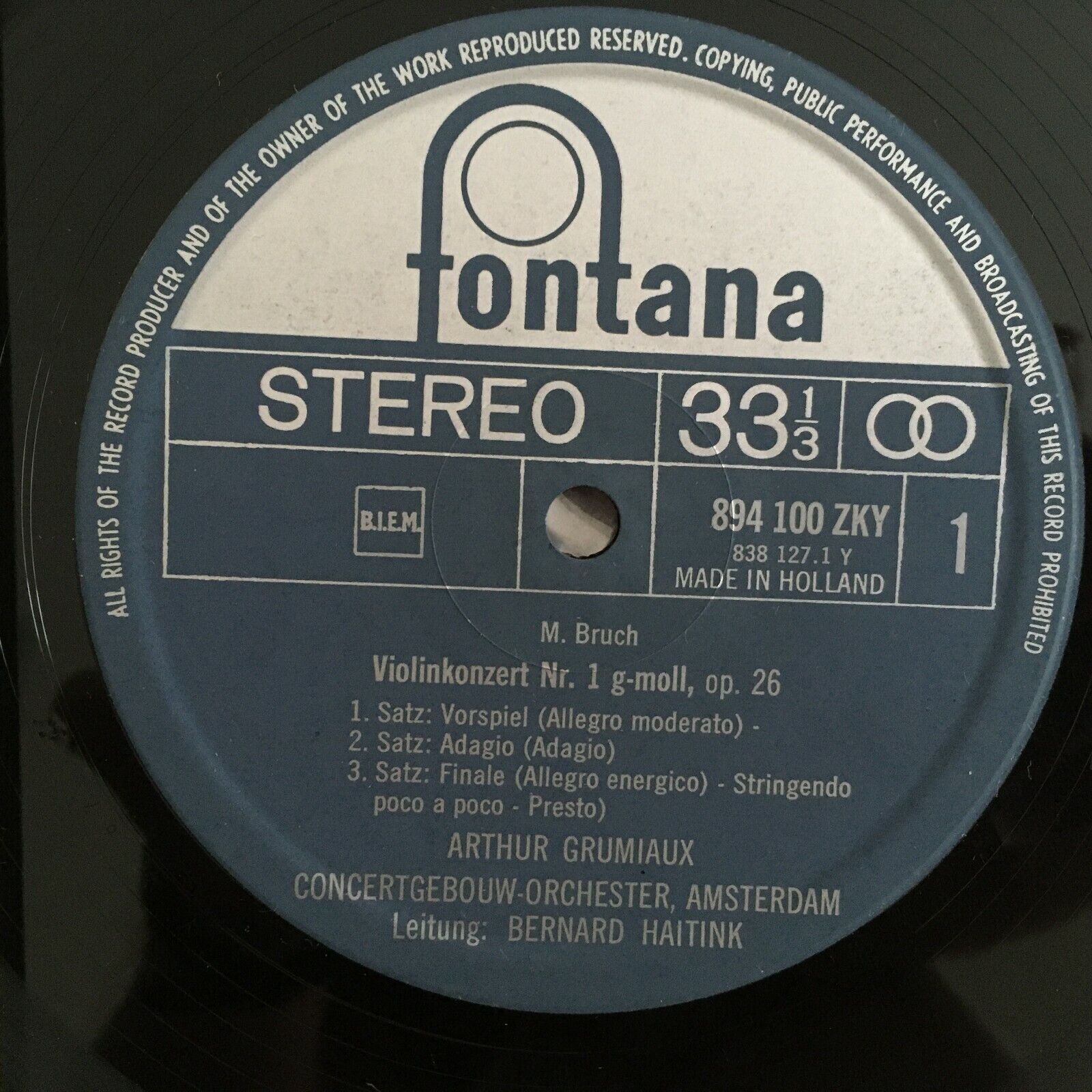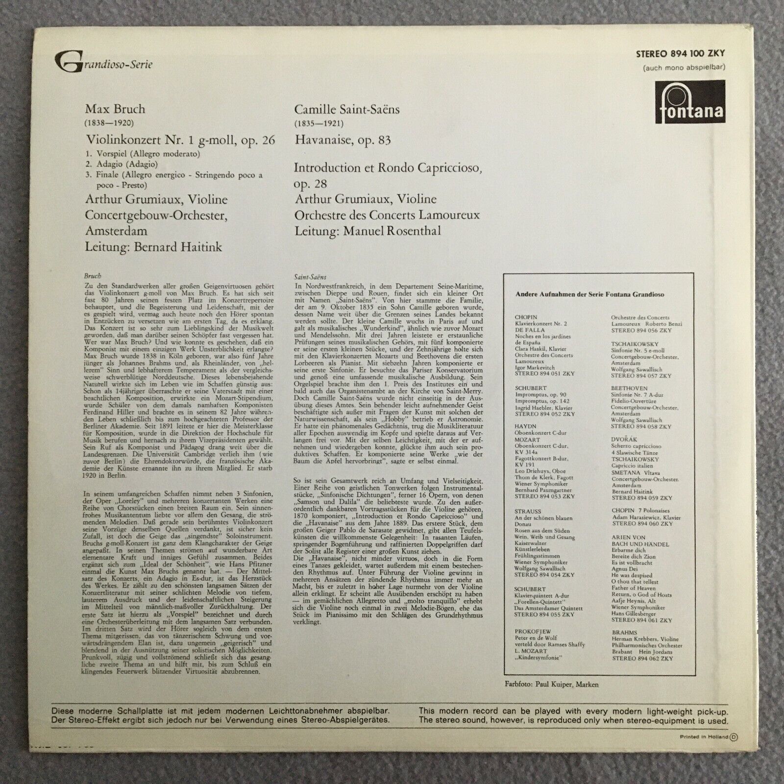 R902 Bruch Violin Concerto Saint-Saens Grumiaux Haitink Fontana 894 100 ZKY St