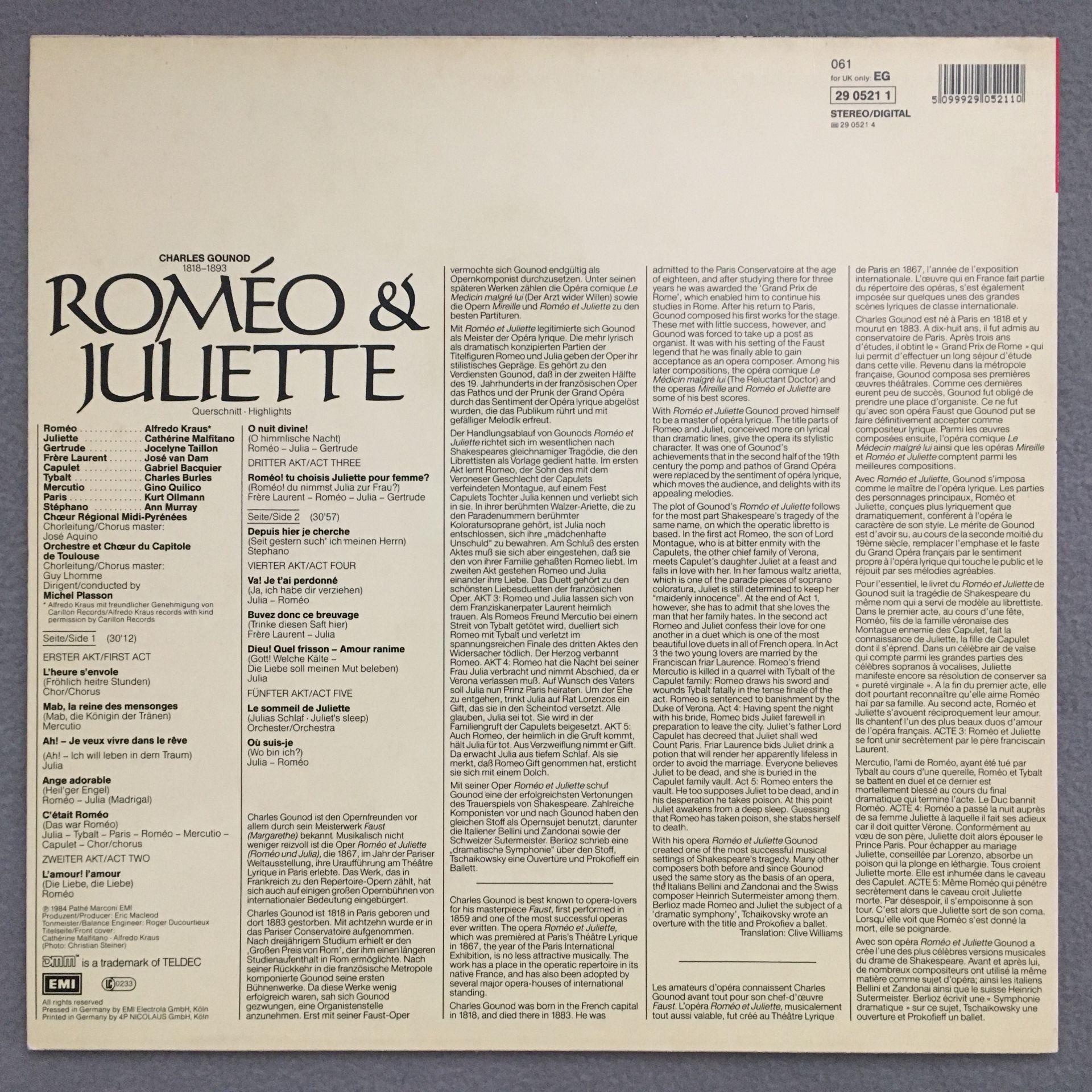 L623 Gounod Romeo & Juliette Kraus Plasson EMI 29 0521 1 Digital Stereo