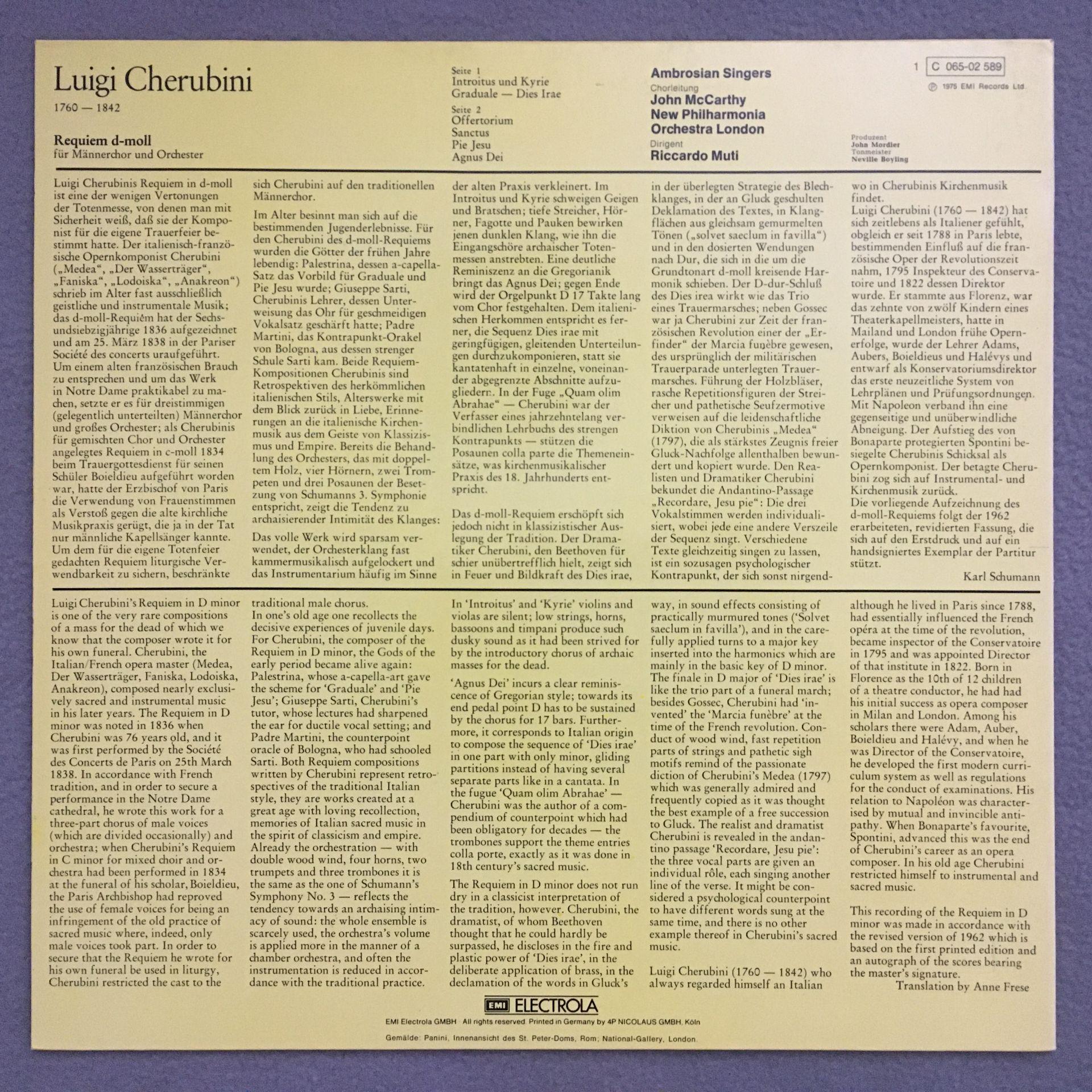 L628 Cherubini Requiem D-Moll Muti EMI 1 C 065-02 589 Q Quadro