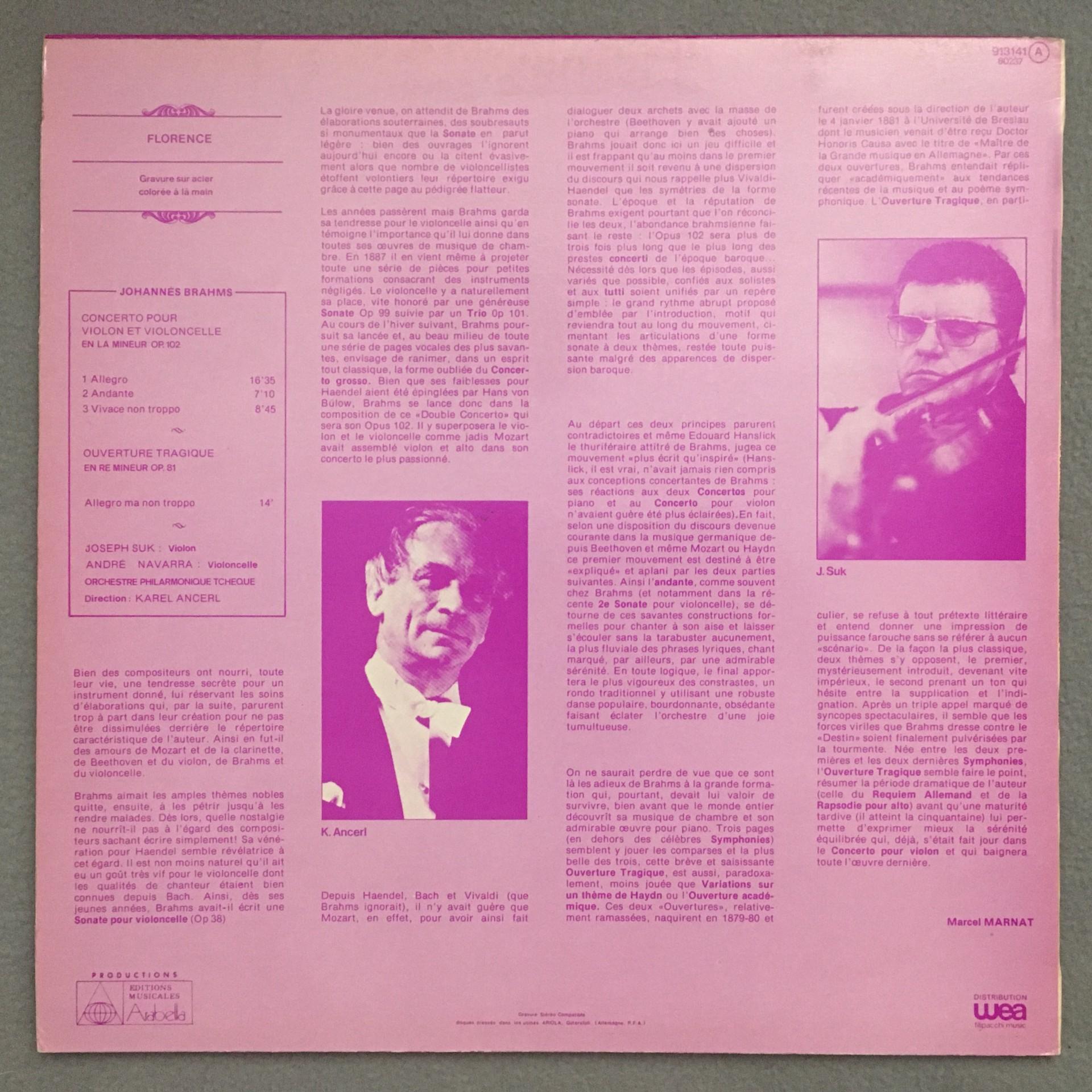 L639 Brahms Violin & Cello Concerto Suk Navarra Ancerl Supraphon 913141 Stereo