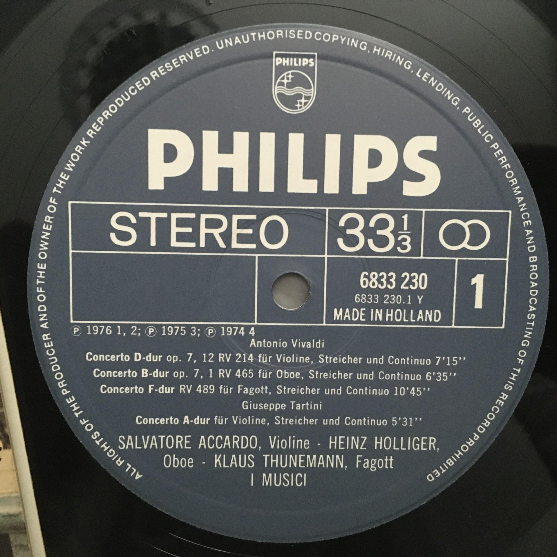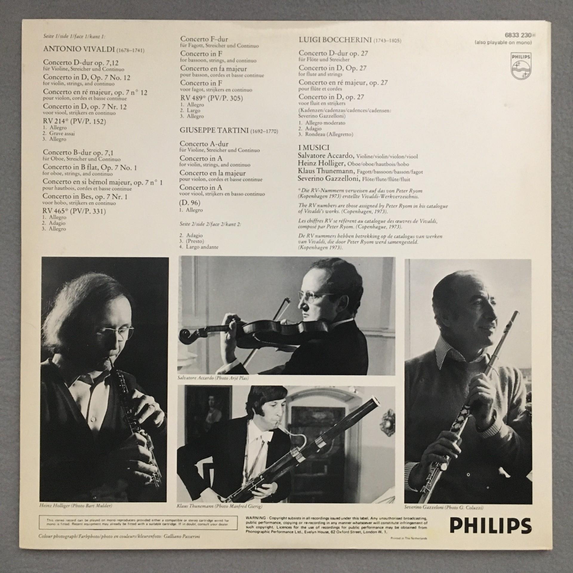 L640 Vivaldi Tartini Boccherini Concertos I Musici Philips 6833 230 Stereo