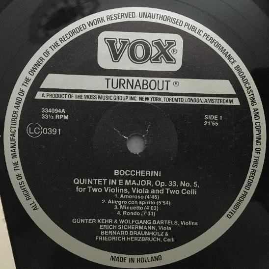 L643 Boccherini String Quintets Kehr Bartels Braunholz VOX TV 334 094 Stereo