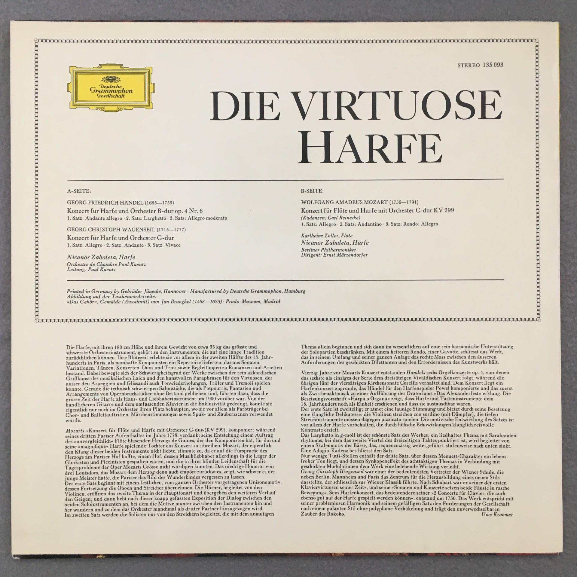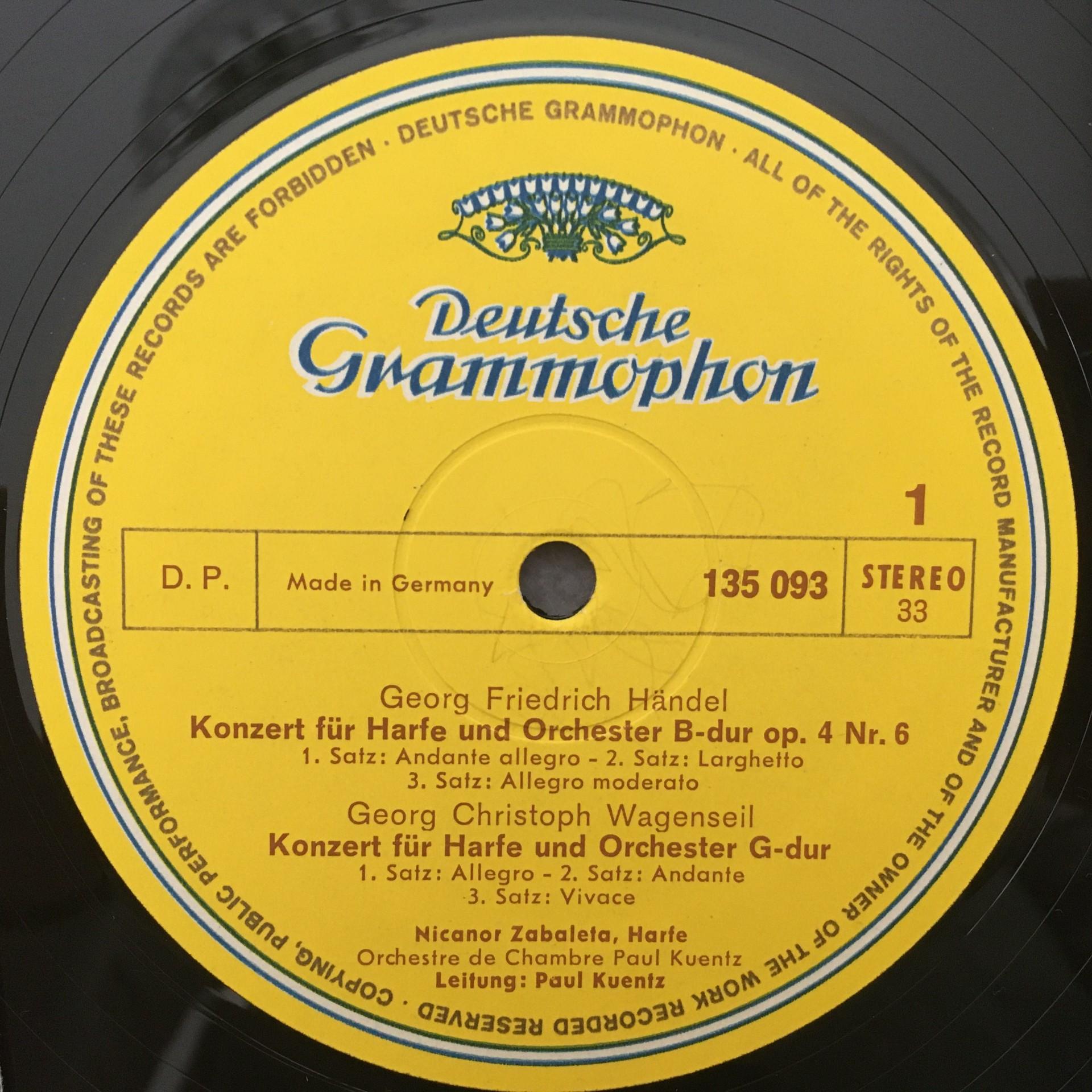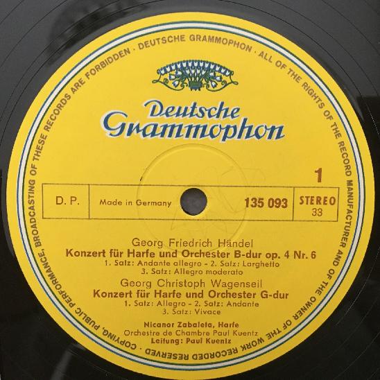 L659 Harp Concertos Zabaleta Handel Mozart Wagenseil DGG 135 093 Stereo