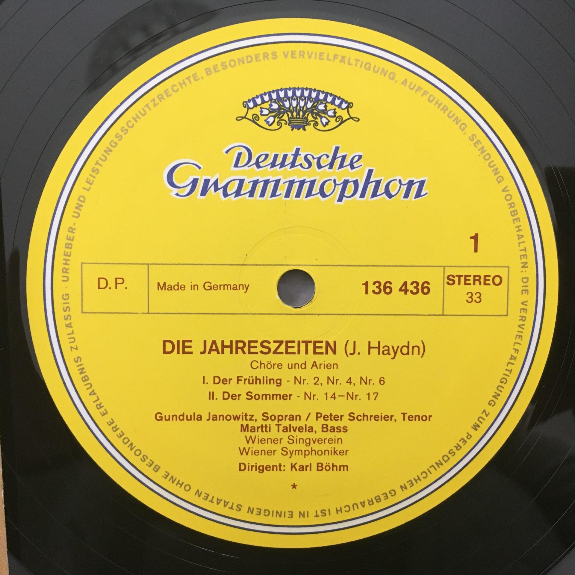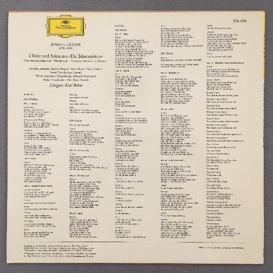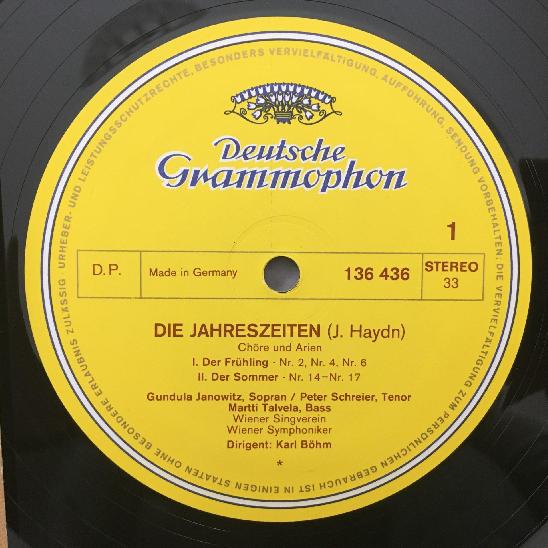 L663 Haydn The Seasons Janowitz Schreier Bohm VSO DGG 136 436 Stereo