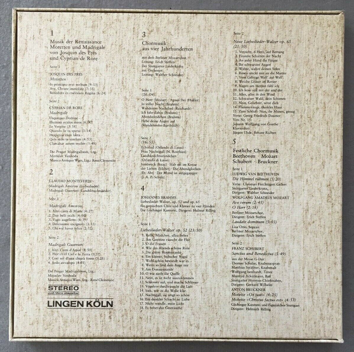 B652 Festive Choral Music Mozart Beethoven Brahms 5LP Lingen Köln 2816 Stereo