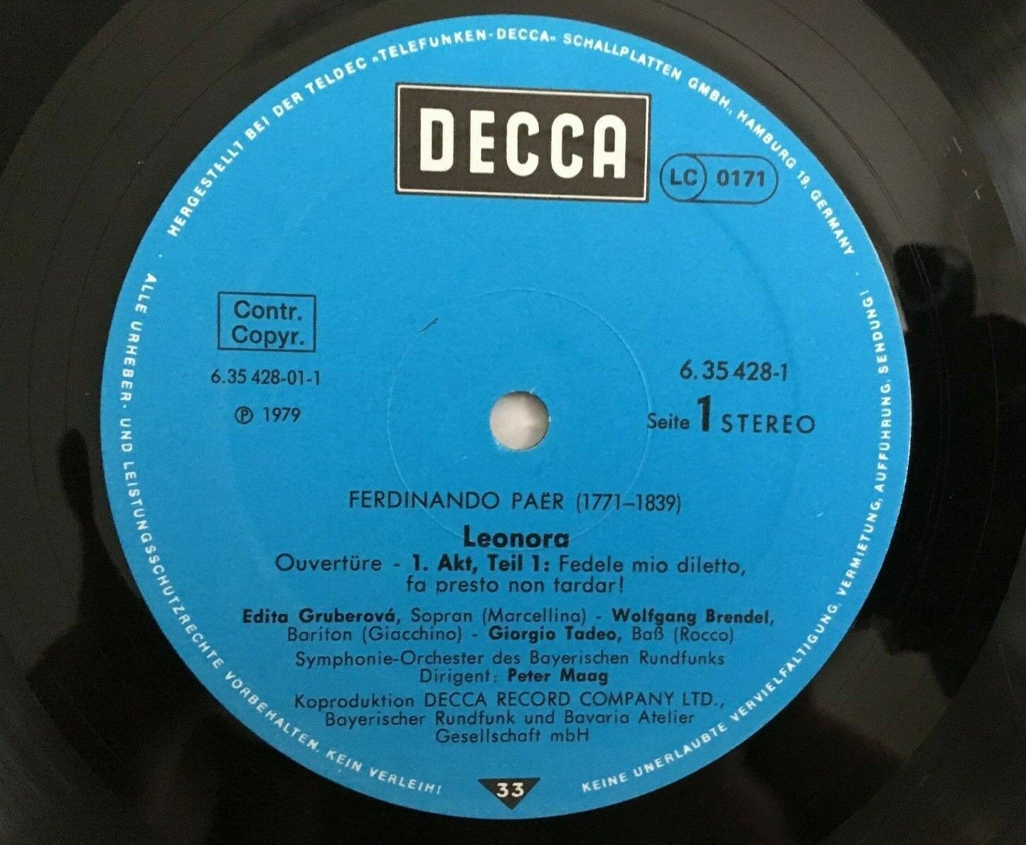 B718 Paer Leonora Koszut Gruberova Jerusalem Maag 3LP DECCA 6.35428 FK Stereo