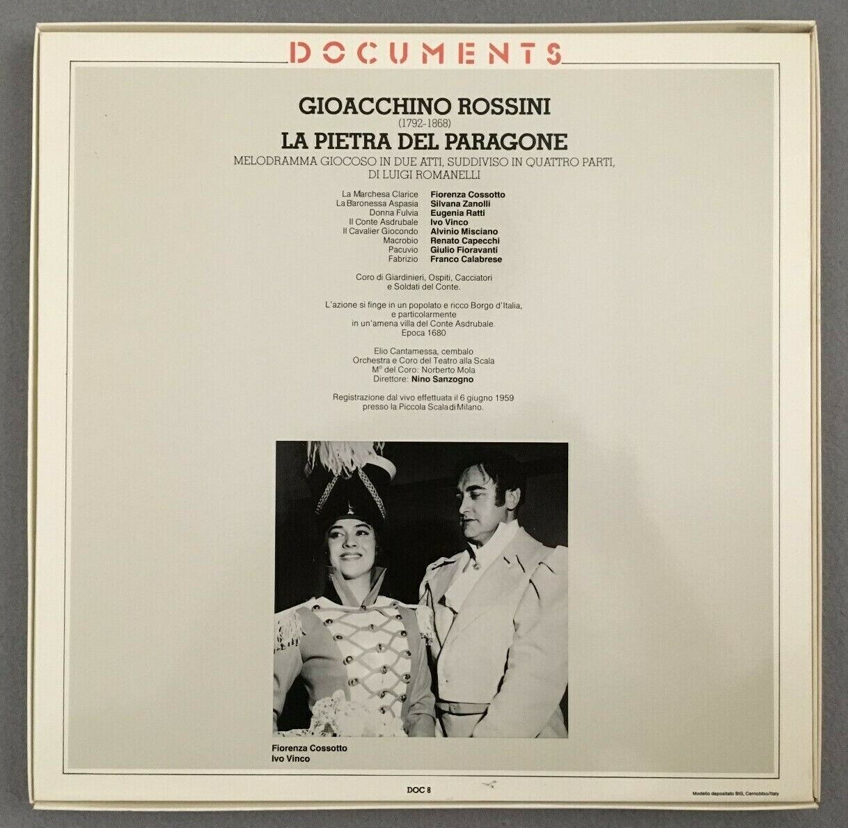 B749 Rossini La Pietra del Paragone Cossotto Sanzogno 2LP Fonit Cetra DOC 8 Ster