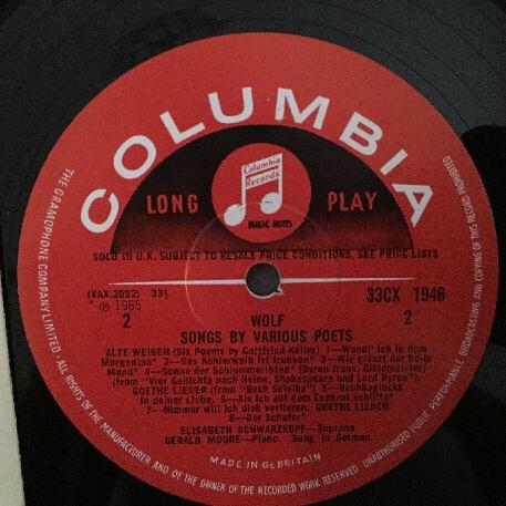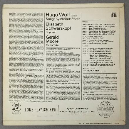 P447 Hugo Wolf Songs from romantic Poets Schwarzkopf Moore Columbia 33CX 1946