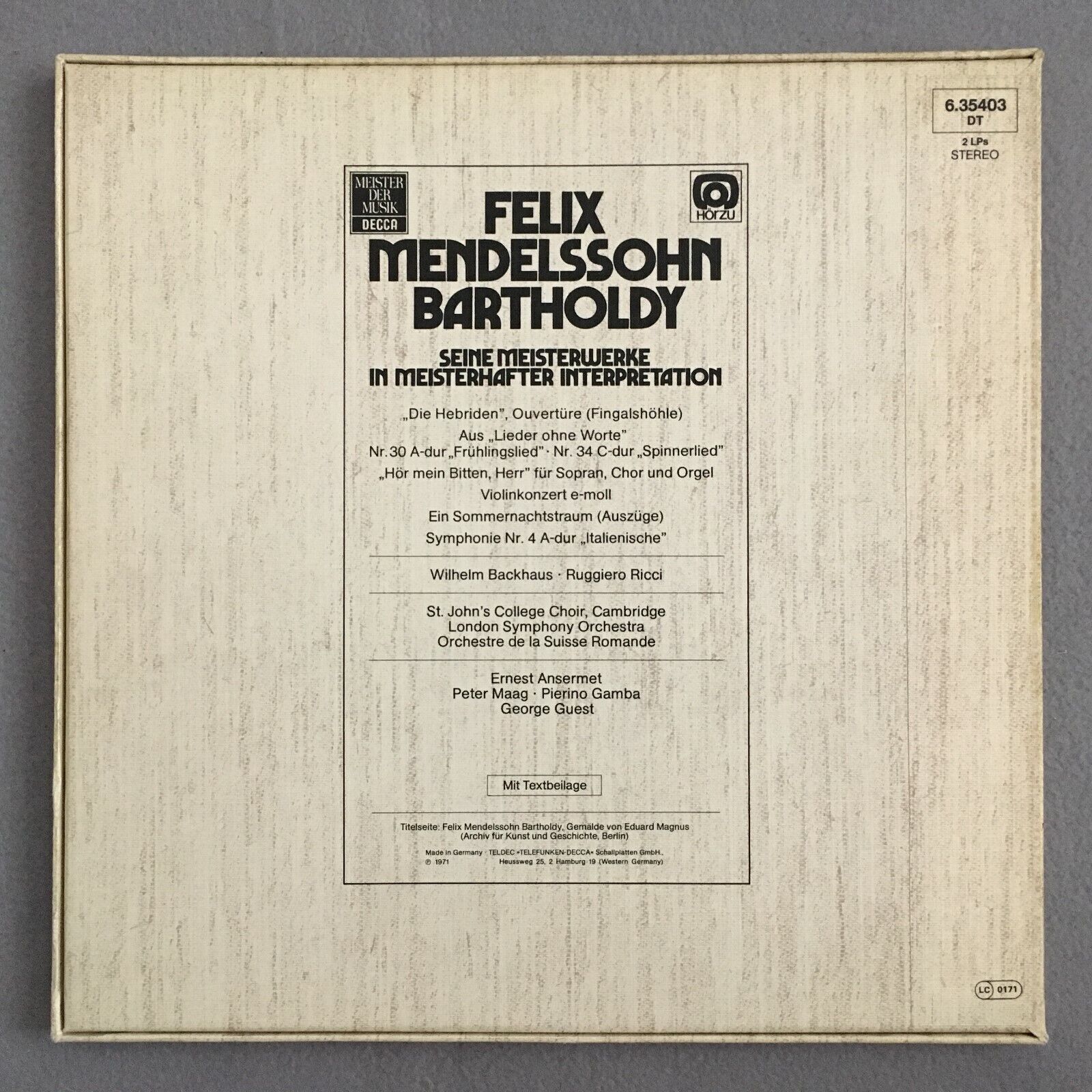 B604 Mendelssohn-Bartholdy His Masterworks Ricci 2LP DECCA 6.35403 DT Stereo
