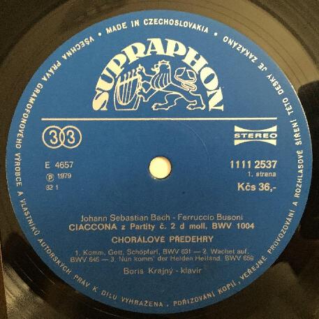 P481 Bach / Busoni Choralove Predehry Ciaccona Krajny Supraphon 1110 2537 G St