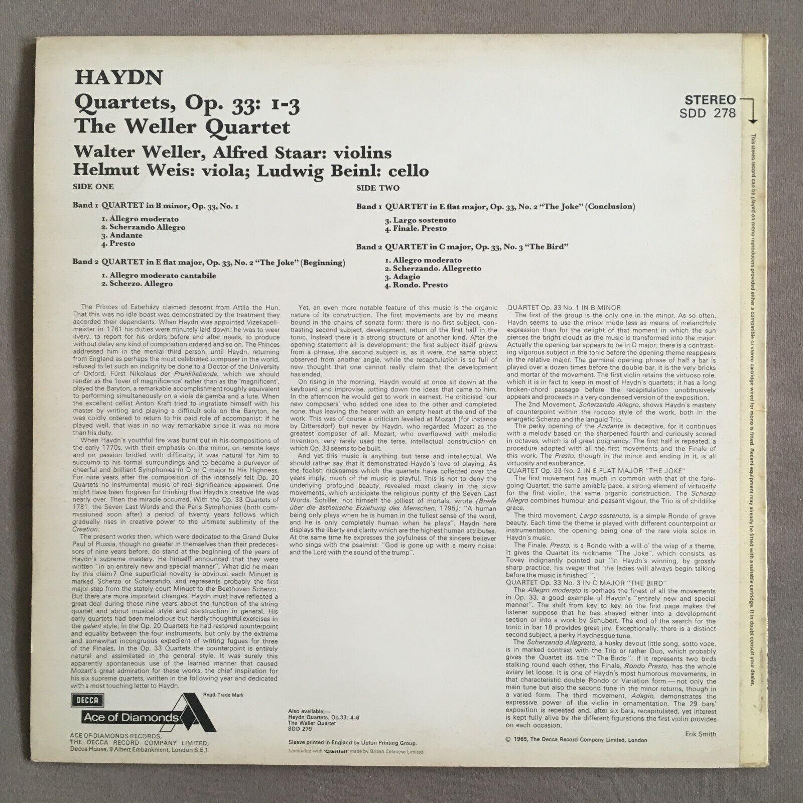P514 Haydn Quartet Op.33: 1-3 Weller Quartet Staar Weis Beinl Decca SDD 278 Ster