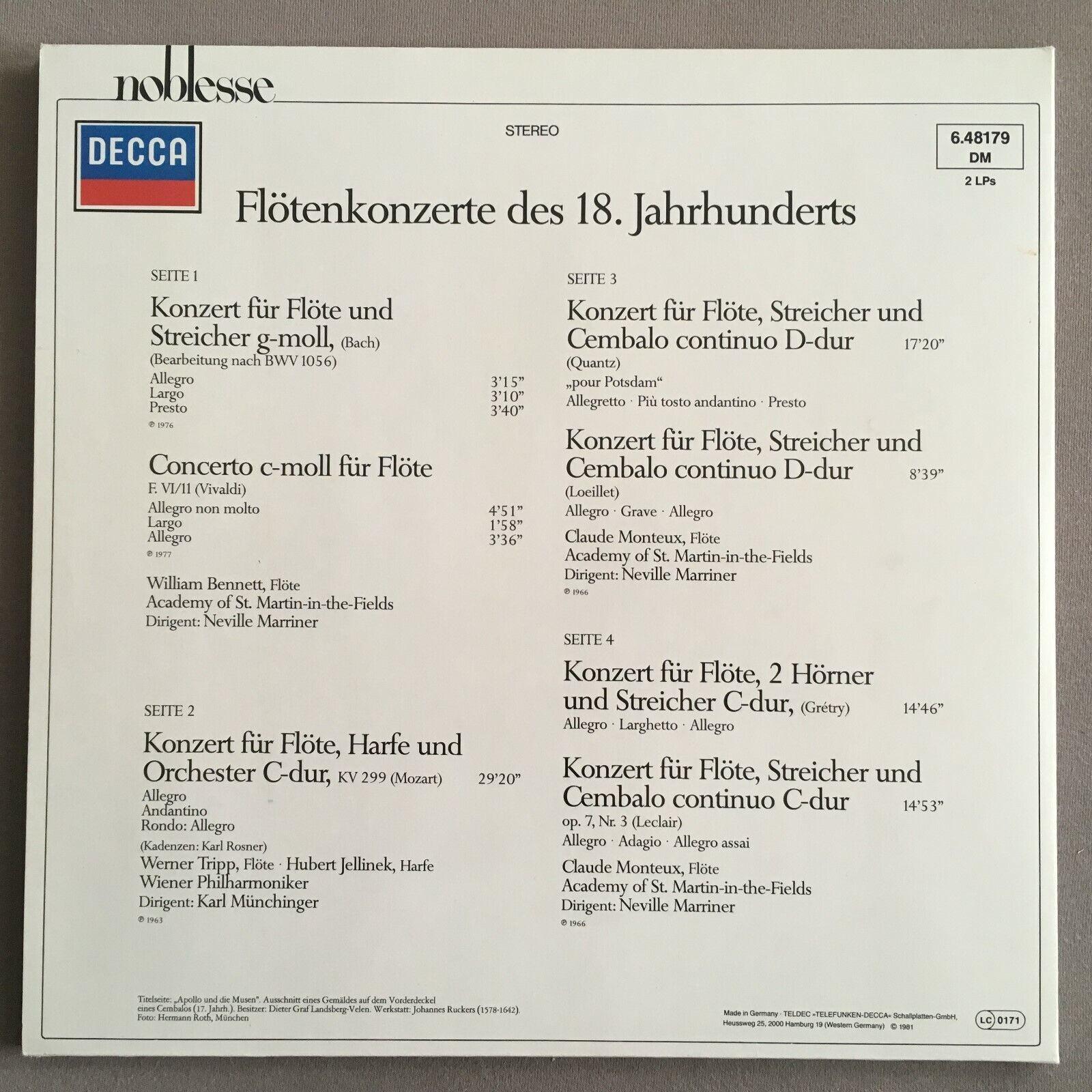 P515 Flute Concertos 18th Century Bennett 2LP DECCA 6.48179 DM Digital Stereo