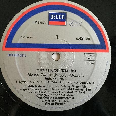 P102 Haydn Nicolai Mass Nelson Kirkby Thomas Preston DECCA 6.42466 AS Stereo