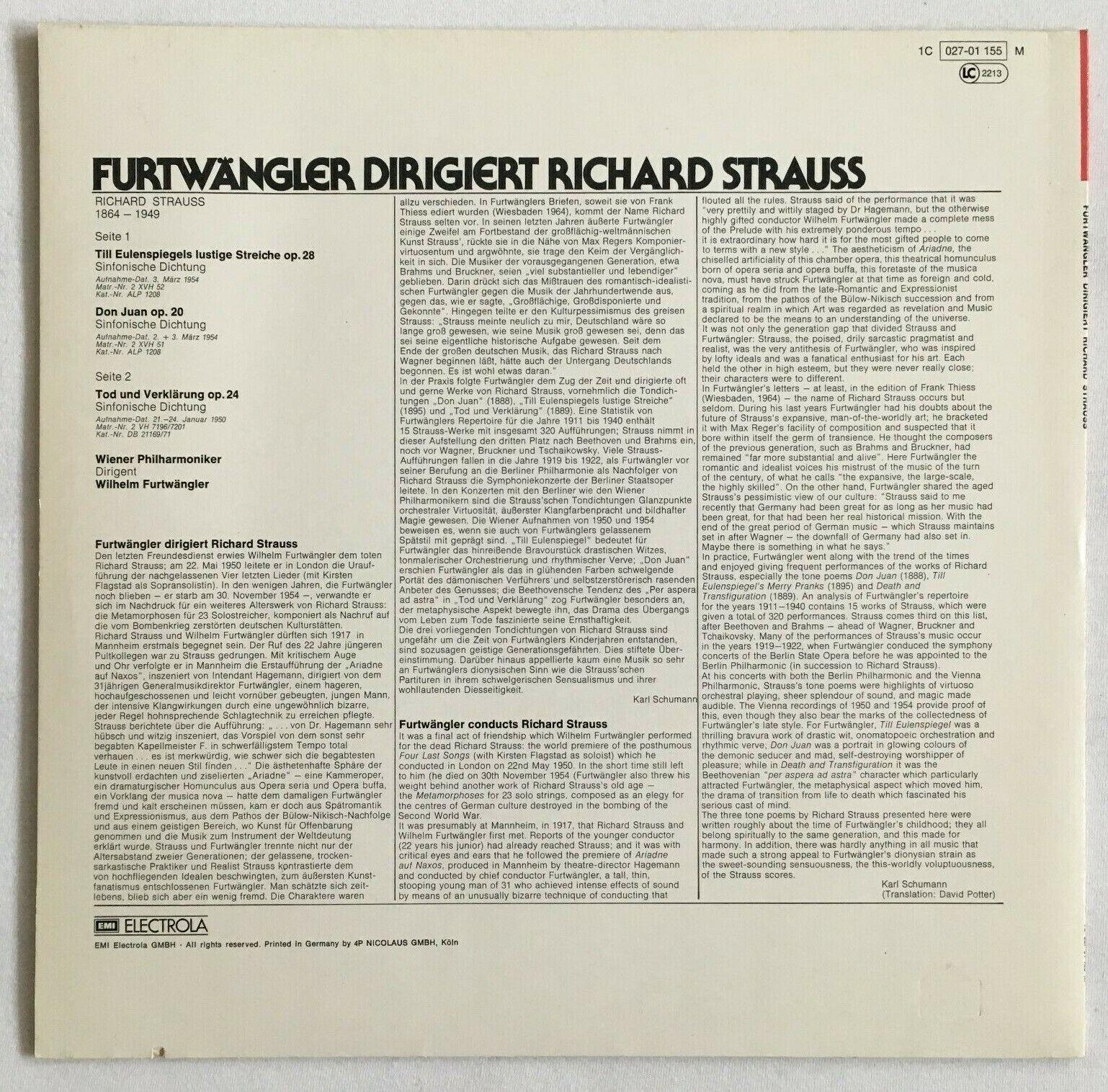 P098 R. Strauss Till Eulenspiegel Don Juan Furtwangler VPO EMI 1C 027-01 155 M