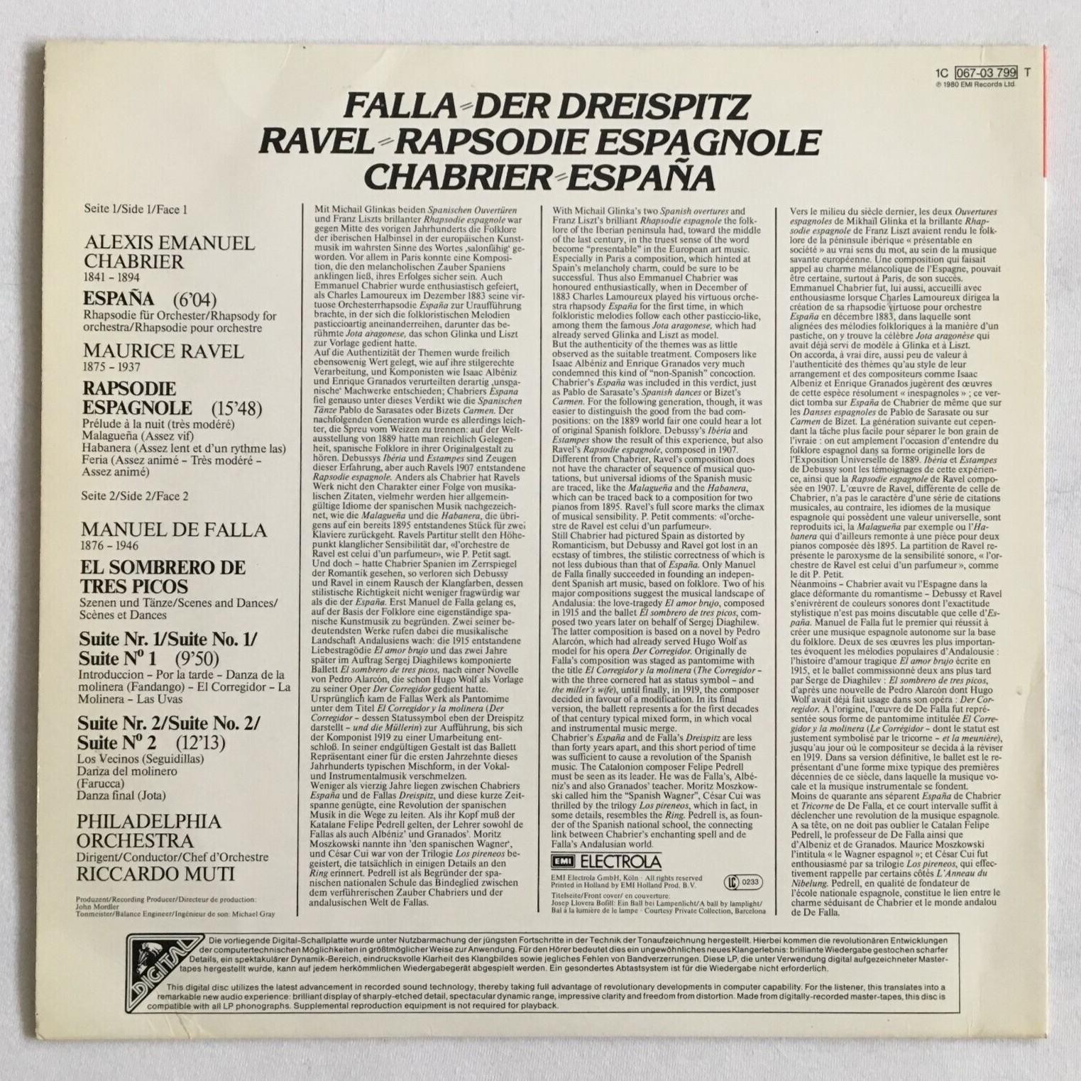 P097 Falla Der Dreispitz Ravel Rhapsody Muti EMI 1C 067-03 799 T Digital Stereo