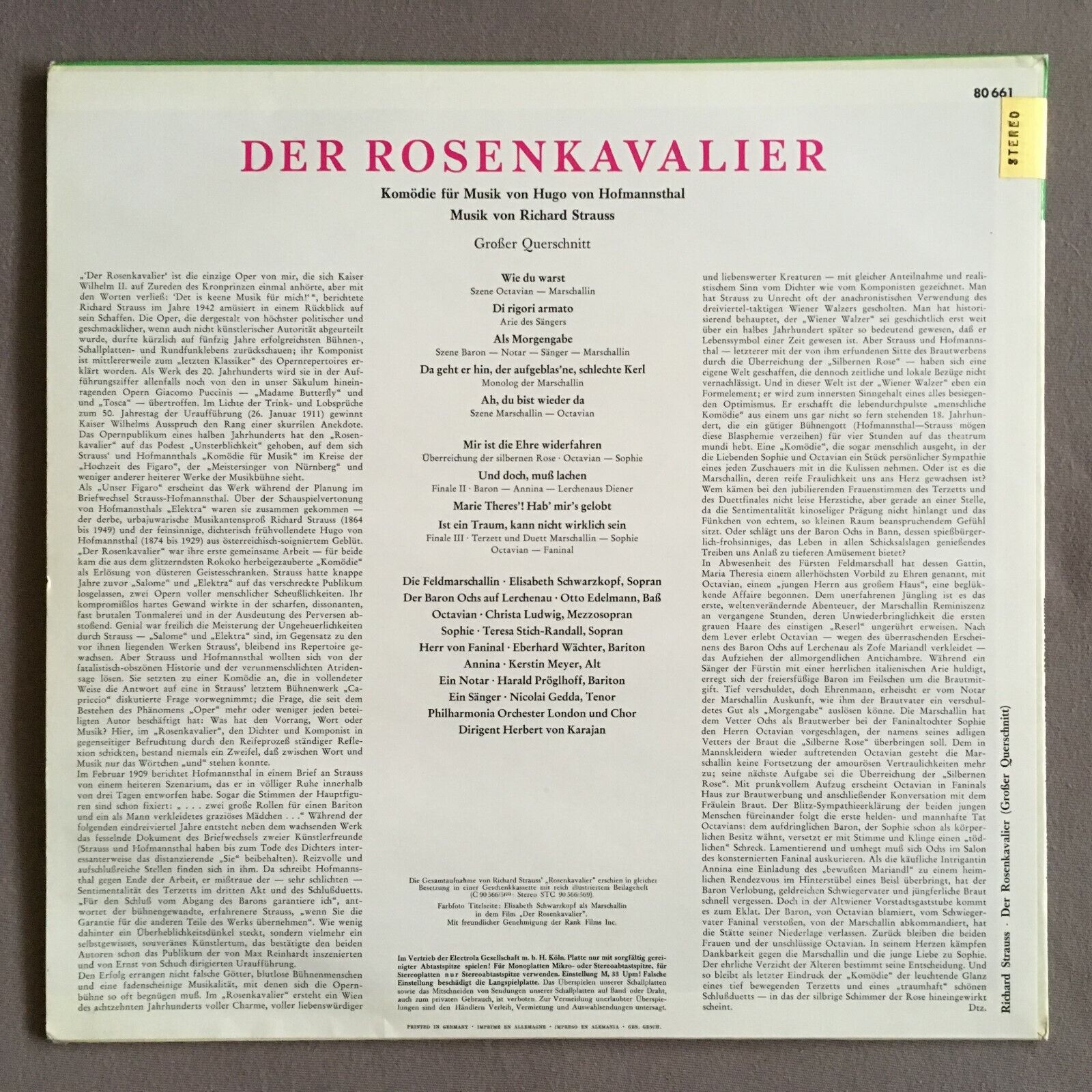 X267 R. Strauss Rosenkavalier Ludwig Karajan LPO Columbia w/g STC 80 661 Stereo