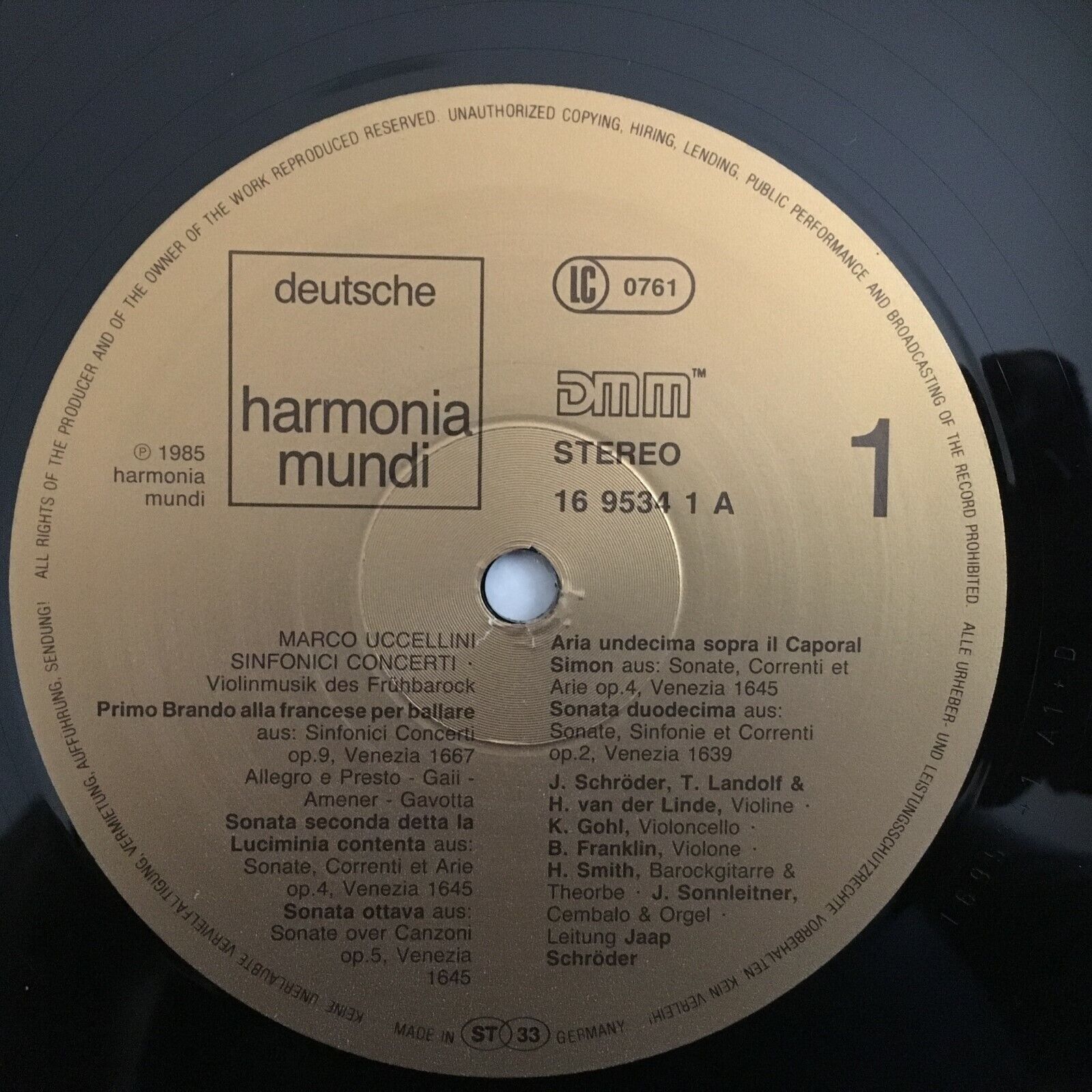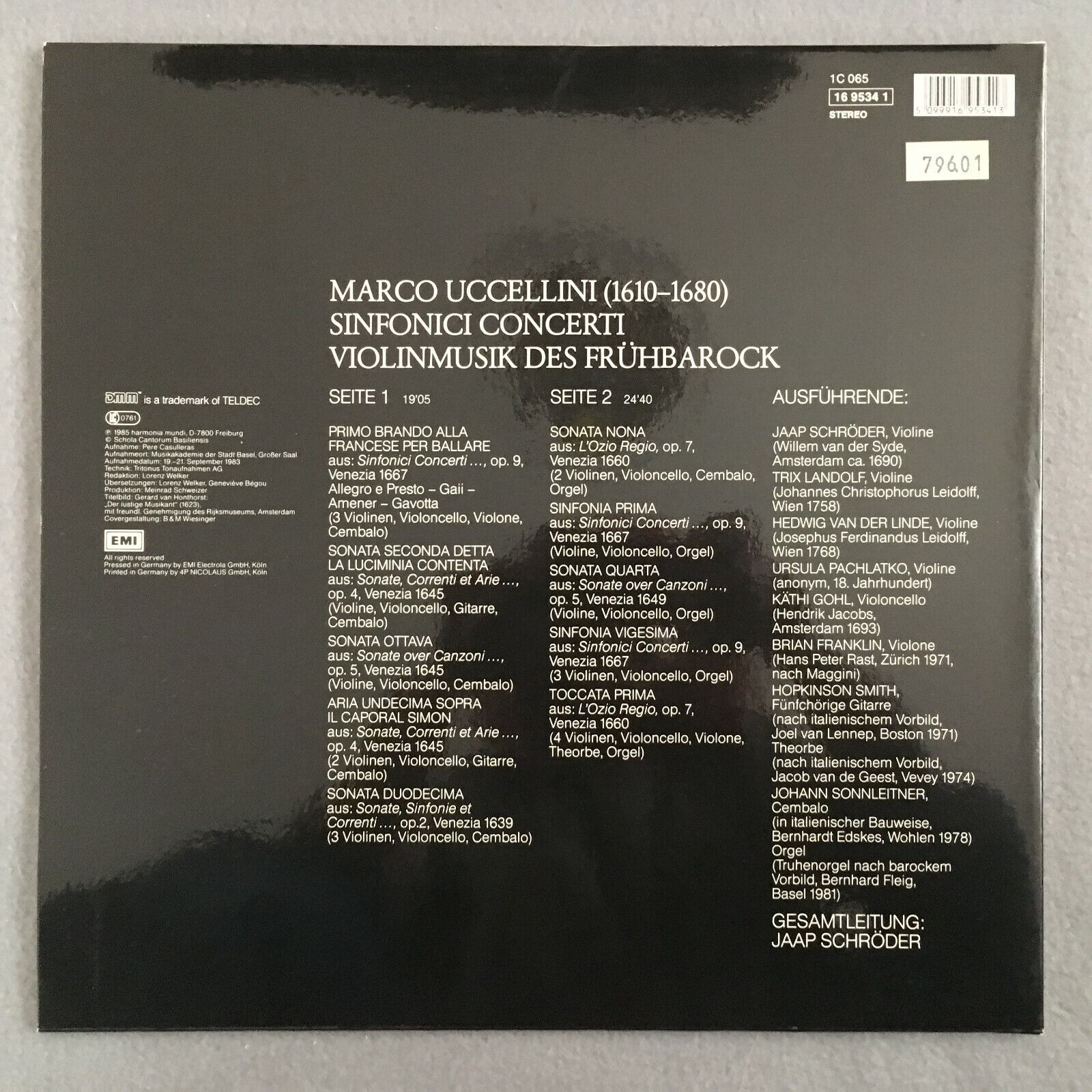 X459 Uccellini Symphonic Concertos Schröder HM 1C 065 16 9534 1 Digital Stereo